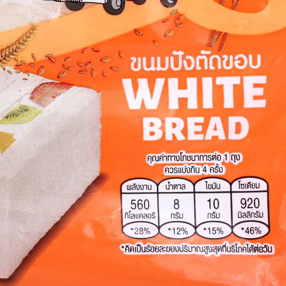 - ขนมปังชนิดเนื้อขาว ตัดขอบ หนา นุ่ม อร่อย 0% คอเลสเตอรอล<br />