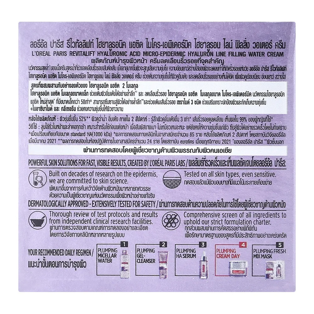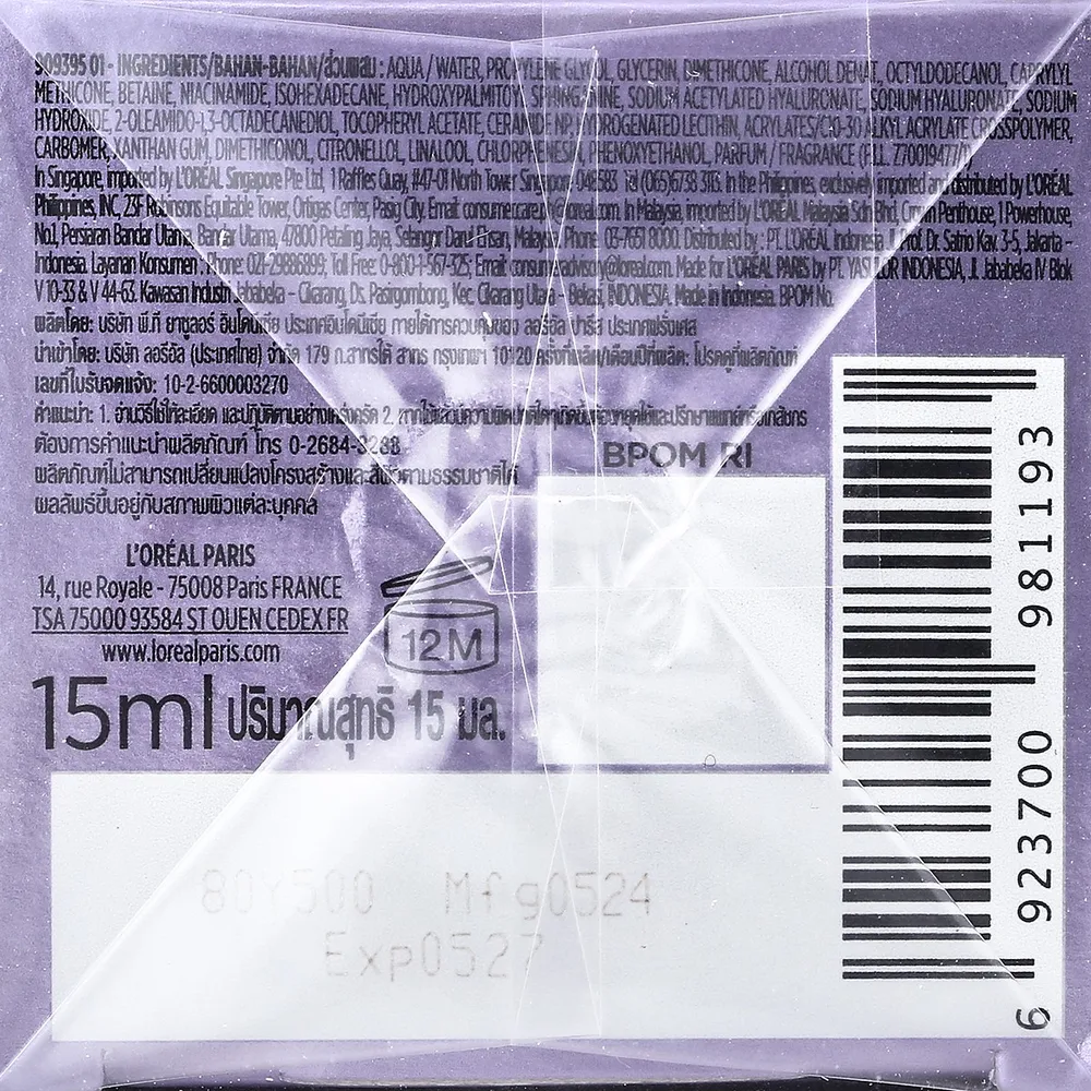 ลอรีอัล ปารีส รีไวทัลลิฟท์ ไฮยาลูรอนิค แอซิด พลัมปิง เดย์ ครีม 15 มล.