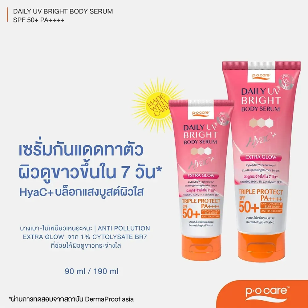 <p>พี.โอ.แคร์ เดลิ ยูวี ไบรท์ บอดี้ เซรั่ม SPF50+ PA++++<br />