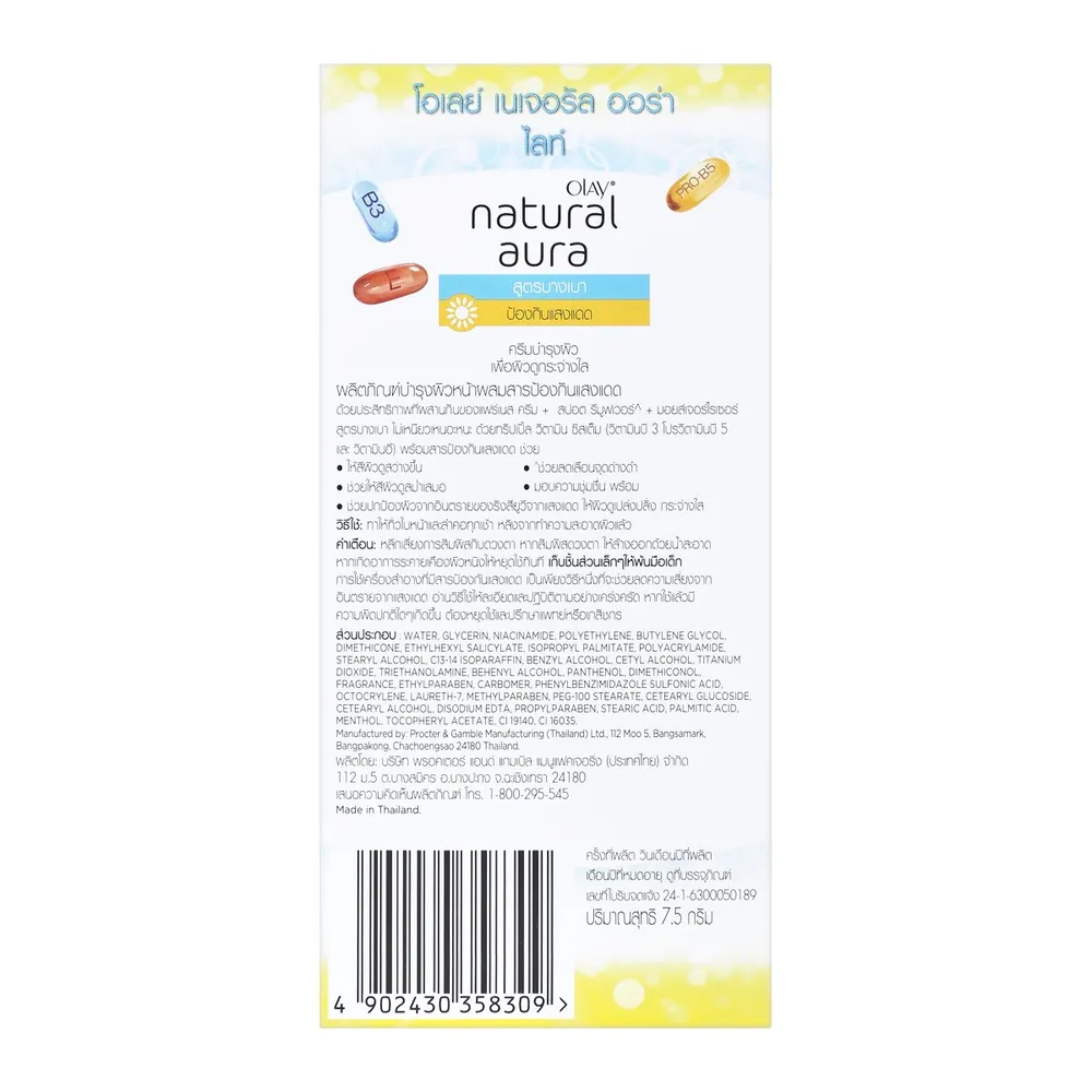 - โอเลย์ เนเชอรัลไวท์ ผลิตภัณฑ์บำรุงผิวหน้าผสมสารป้องกันแสงแดด<br />
