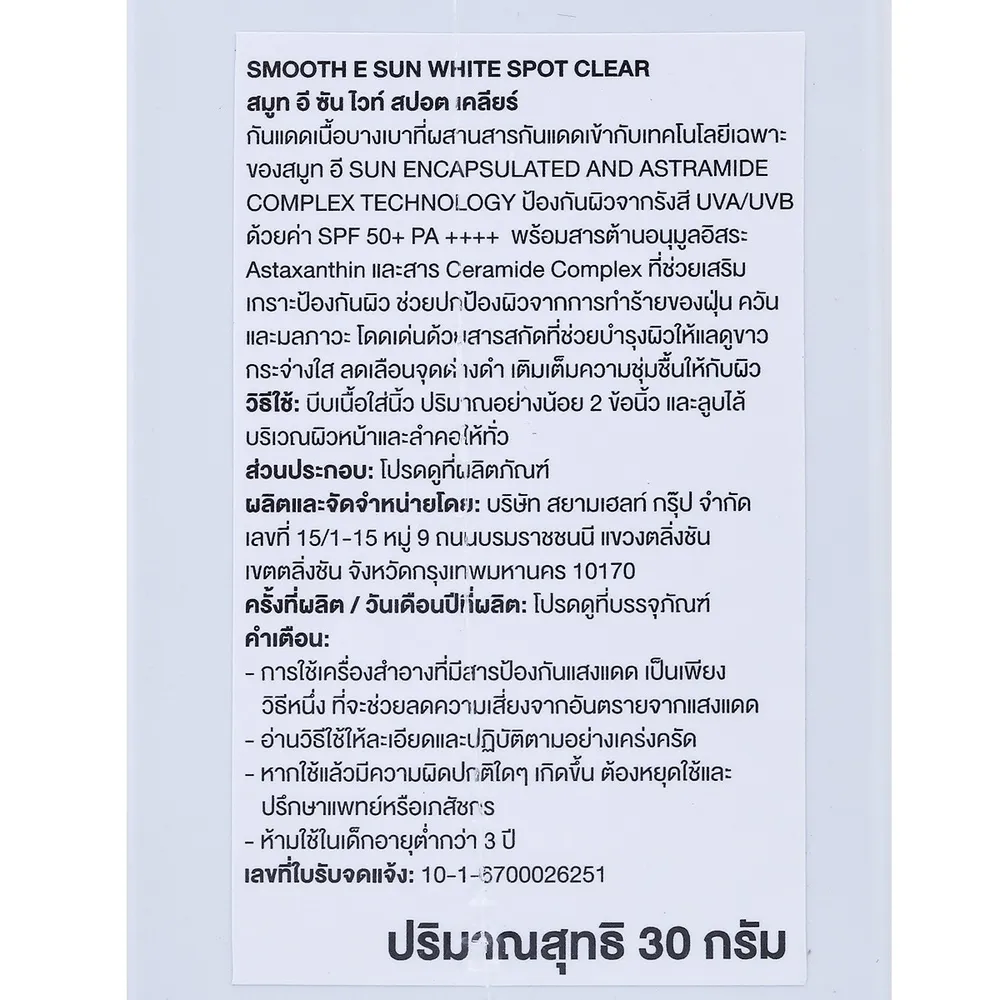 <p>สมูทอี ซัน ไวท์ สปอต เคลียร์ 30 ก.<br />