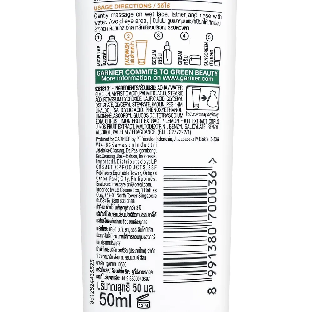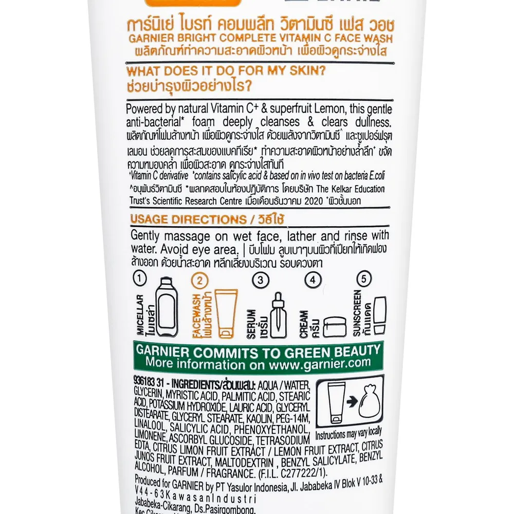 - การ์นิเย่ ไบรท์ คอมพลีท ไวท์ สปีด ไบรท์เทนนิ่ง เฟช วอช<br />