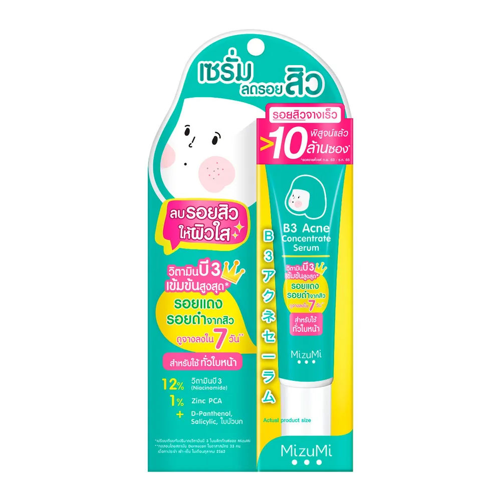 มิซึมิ บีทรี แอคเน่ คอนเซนเทรท เซรั่ม เซรั่มลดรอยสิว สูตรวิตามินบี 3 เข้มข้น 12% ช่วยลดรอยแดง รอยดำจากสิว ปรับสีผิวให้ดูสม่ำเสมอ กระจ่างใสจนสังเกตได้ รักษาความชุ่มชื้นของผิวตามธรรมชาติ พร้อมลดอาการอักเสบและระคายเคืองผิวจากการกดสิว หรือการรักษาสิวได้เป็นอย่างดี<br />