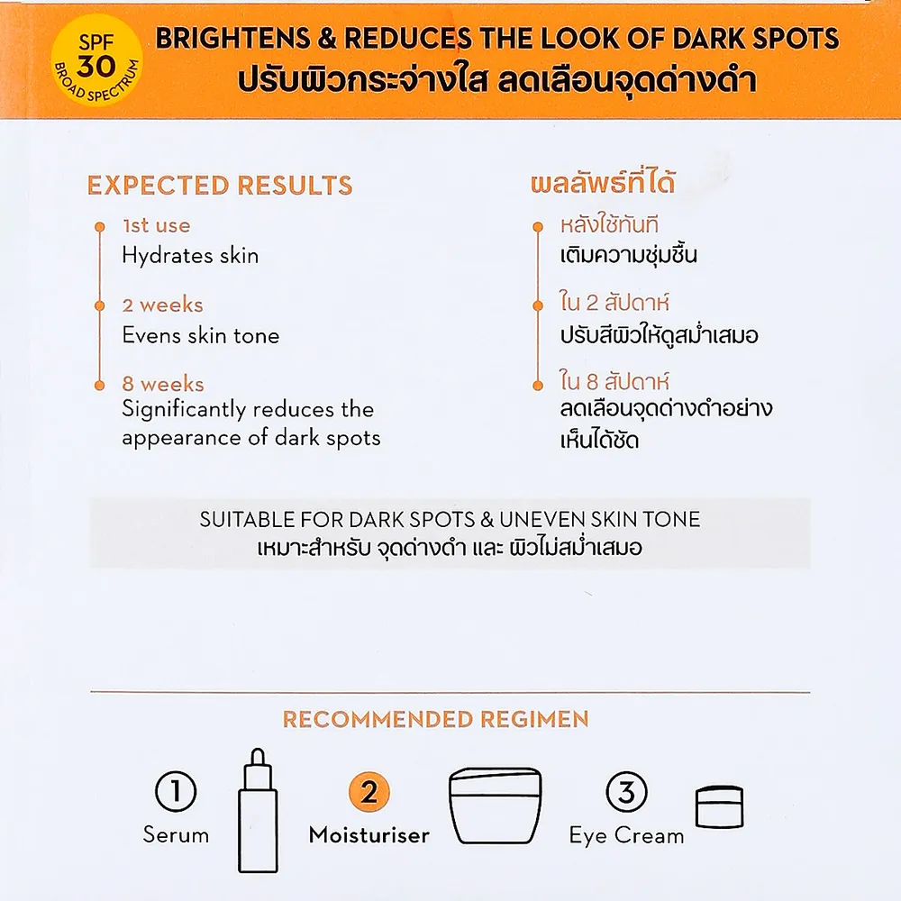 - ใน 8 สัปดาห์: ลดเลือนจุดด่างดำอย่างเห็นได้ชัด<br />
