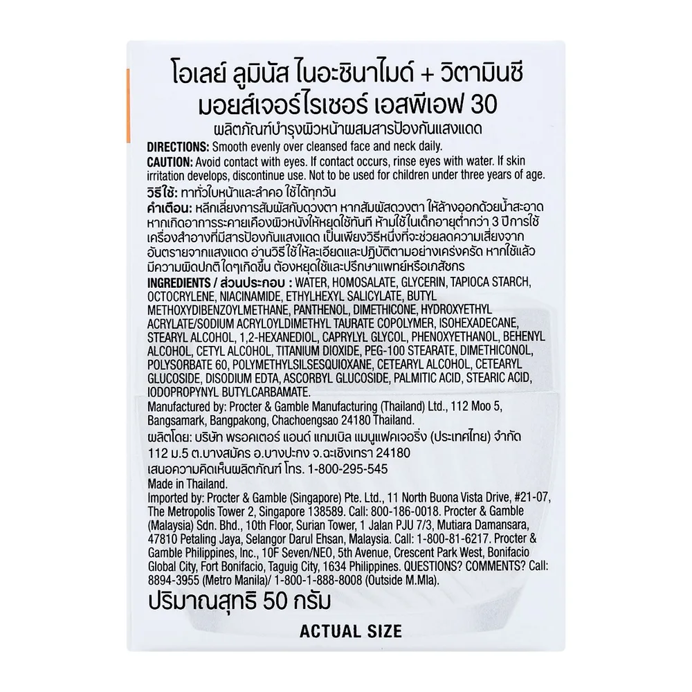 โอเลย์ ลูมินัส ไนอะซินาไมด์ + วิตามินซี มอยส์เจอร์ไรเซอร์ เอสพีเอฟ 30 50 ก.