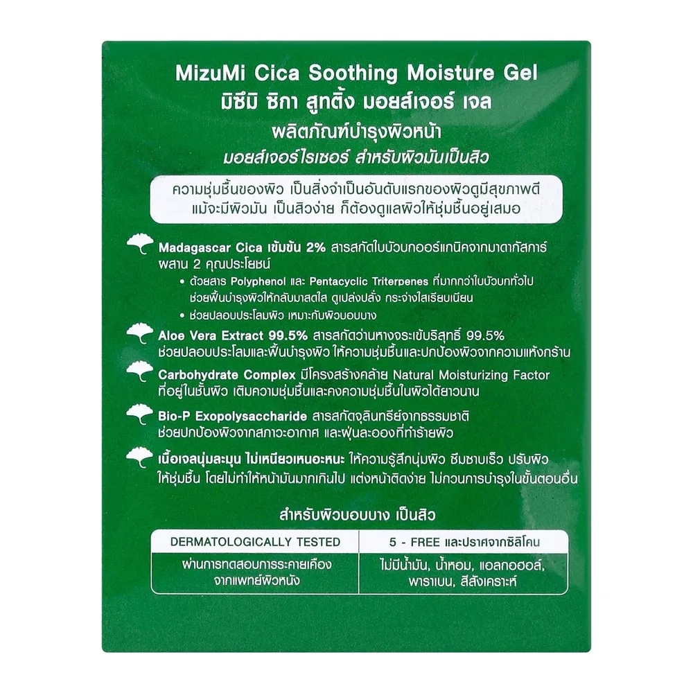 มิซึมิ ซิกา สูทติ้ง มอยส์เจอร์ เจล มอยส์เจอร์ไรเซอร์สูตรเข้มข้น สำหรับผิวมัน เป็นสิวง่าย มาพร้อมสารสกัดใบบัวบก ออร์แกนิคจามาดากัสการ์&nbsp;2% สารสกัดว่านหางจระเข้บริสุทธิ์ 99.5%&nbsp;Carbohydrate Complex และ Bio-P Exopolysaccharide ปกป้องผิวจากความแห้งกร้านและมลภาวะ ให้ผิวชุ่มชื้นยาวนาน แข็งแรง ดูสุขภาพดี<br />