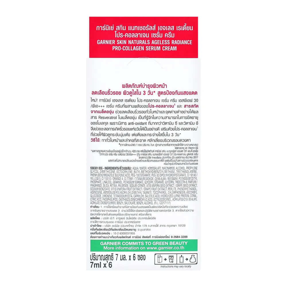 การ์นิเย่ สกิน เนเชอรัลส์ เอจเลส เรเดี้ยน โปร-คอลลาเจน เซรั่ม ครีม 7 มล. แพ็ค 6