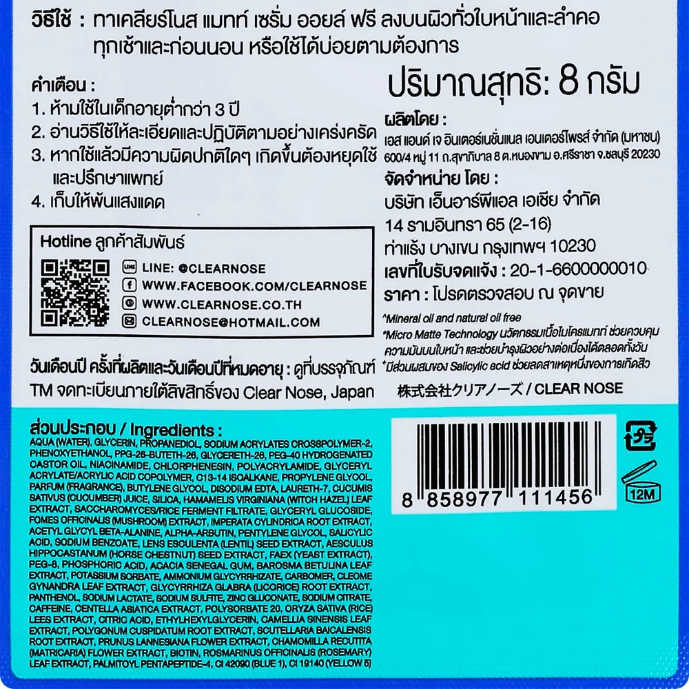 เคลียร์โนส แมทท์ เซรั่ม ออยล์ ฟรี 8 ก.