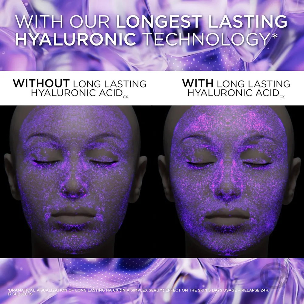 - ไฮยาลูรอนิค แอซิด โมเลกุลขนาด ไมโคร-เอพิเดอร์มิค ที่มีขนาดเล็กกว่า 50เท่า^ สามารถซึมซาบสู่ผิวได้อย่างล้ำลึก++และช่วยเติมเส้นริ้วรอย<br />