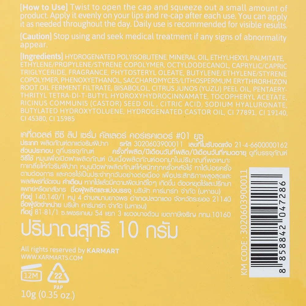 เคที่ ดอลล์ ซีซี ลิปเซรั่ม สี 01 Yuzu 10 ก.
