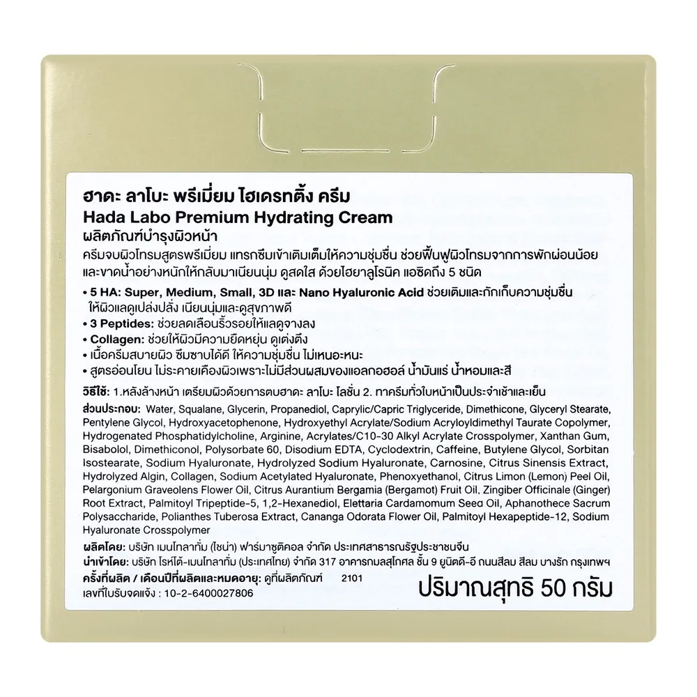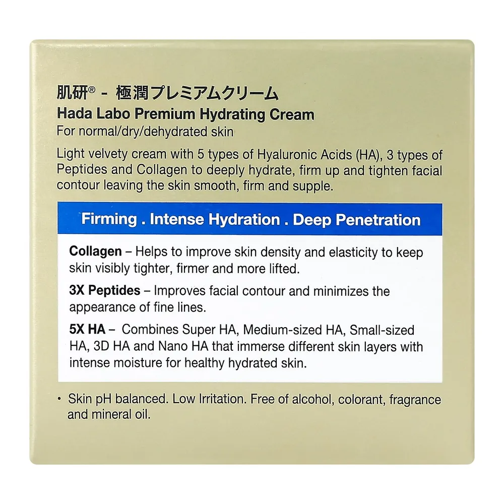ฮาดะ ลาโบะ พรีเมี่ยม ไฮเดรทติ้ง ครีม&nbsp;ครีมจบผิวโทรมสูตรพรีเมี่ยม แทรกซึมเข้าเติมเต็มให้ความชุ่มชื่น ช่วยฟื้นฟูผิวโทรมจากการพักผ่อนน้อย และขาดน้ำอย่างหนักให้กลับมาเนียนนุ่ม ดูสดใส ด้วยไฮยาลูโรนิค แอซิดถึง 5 ชนิด&nbsp;ให้ผิวแลดูเปล่งปลั่ง เนียนนุ่มและดูสุขภาพดี<br />