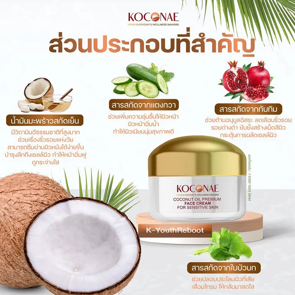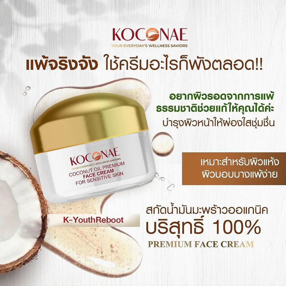 โคโคเน่ โคโคนัท ออยล์ พรีเมียม เฟส ครีม สำหรับผิวบอบบาง 30 ก.