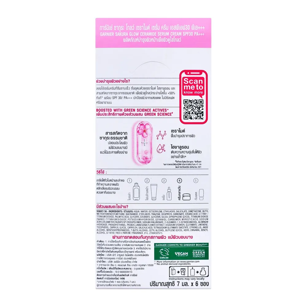 การ์นิเย่ สกิน เนเชอรัลส์ ซากุระ โกลว์ ไฮยาลูรอน เซรั่ม ครีม เอสพีเอฟ 30 พีเอ+++ 7 มล. แพ็ค 6