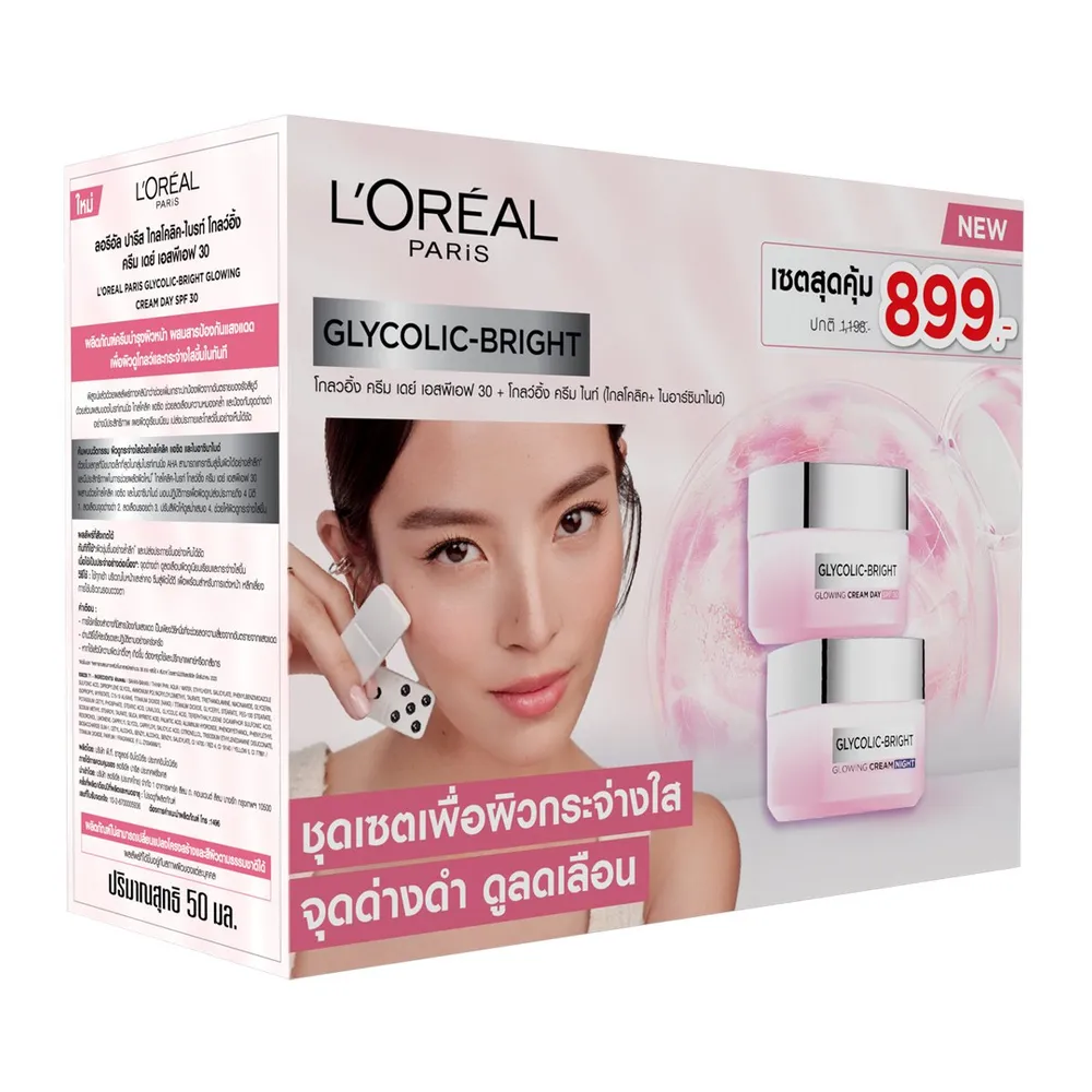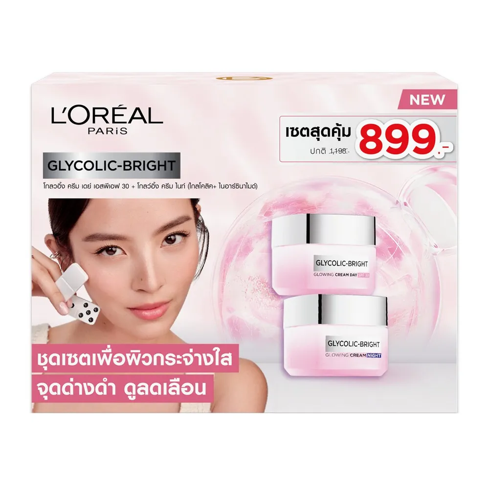 ลอรีอัล ปารีส โกลวอิ้ง ไกลโคลิค ครีม เดย์ เอสพีเอฟ 30 50 มล. + โกลวอิ้ง ไกลโคลิค ครีม ไนท์ 50 มล.