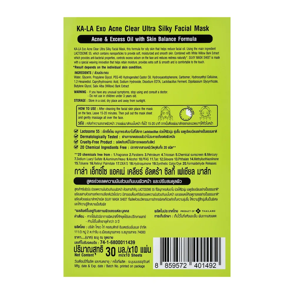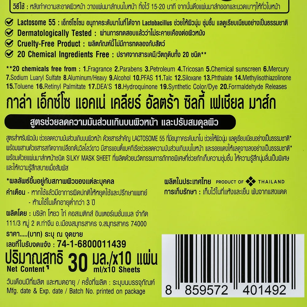 กาล่า เอ็กซ์โซ แอคเน่ คอนโทรล อัลตร้า ซิลกี้ เฟเชียล มาส์ก 30 มล. x 10 ชิ้น