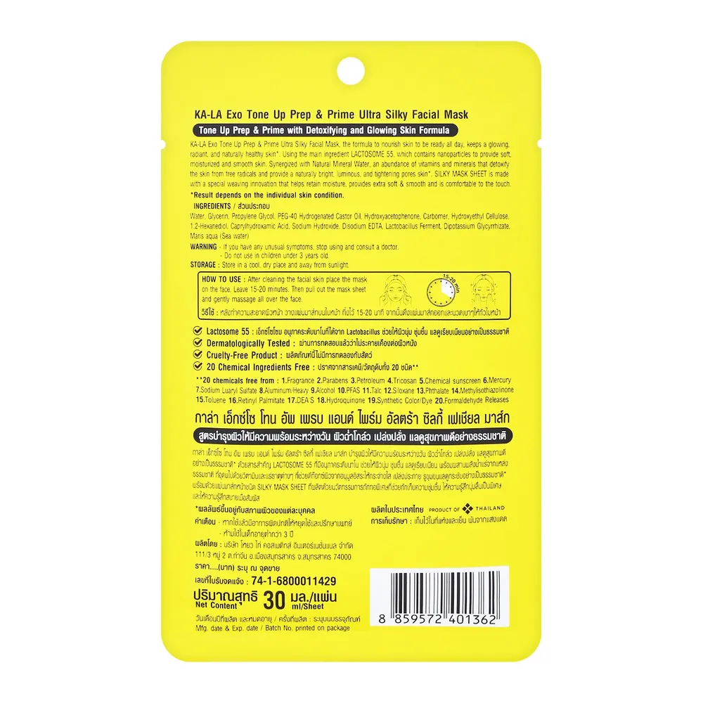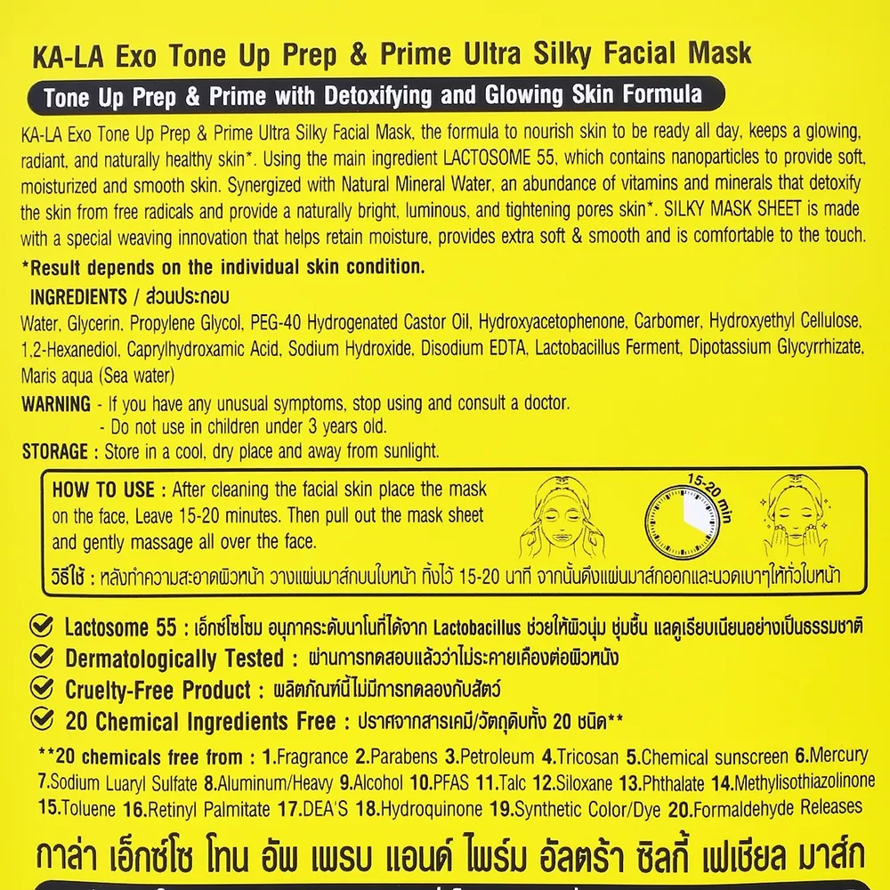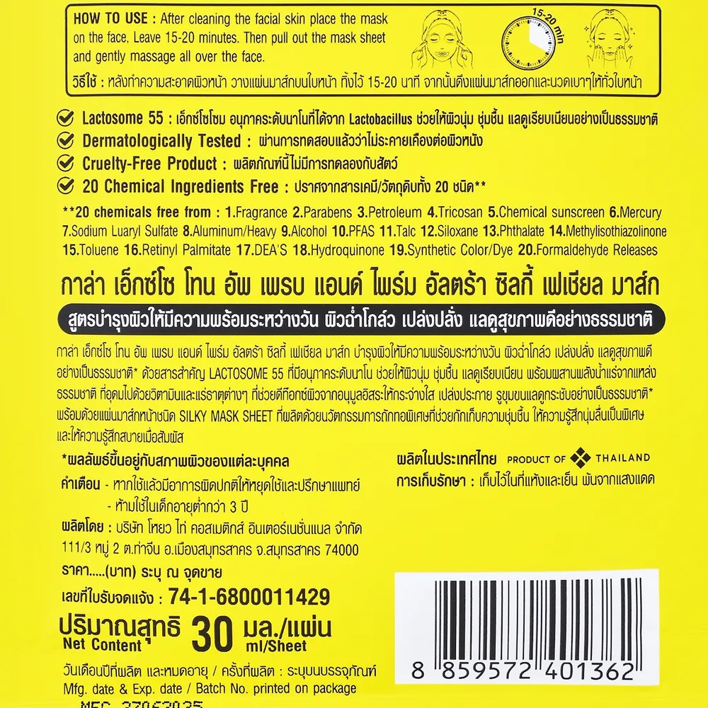 กาล่า เอ็กซ์โซ โทน อัพ เพรบ แอนด์ ไพร์ม อัลตร้า ซิลกี้ เฟเชียล มาส์ก 30 มล.