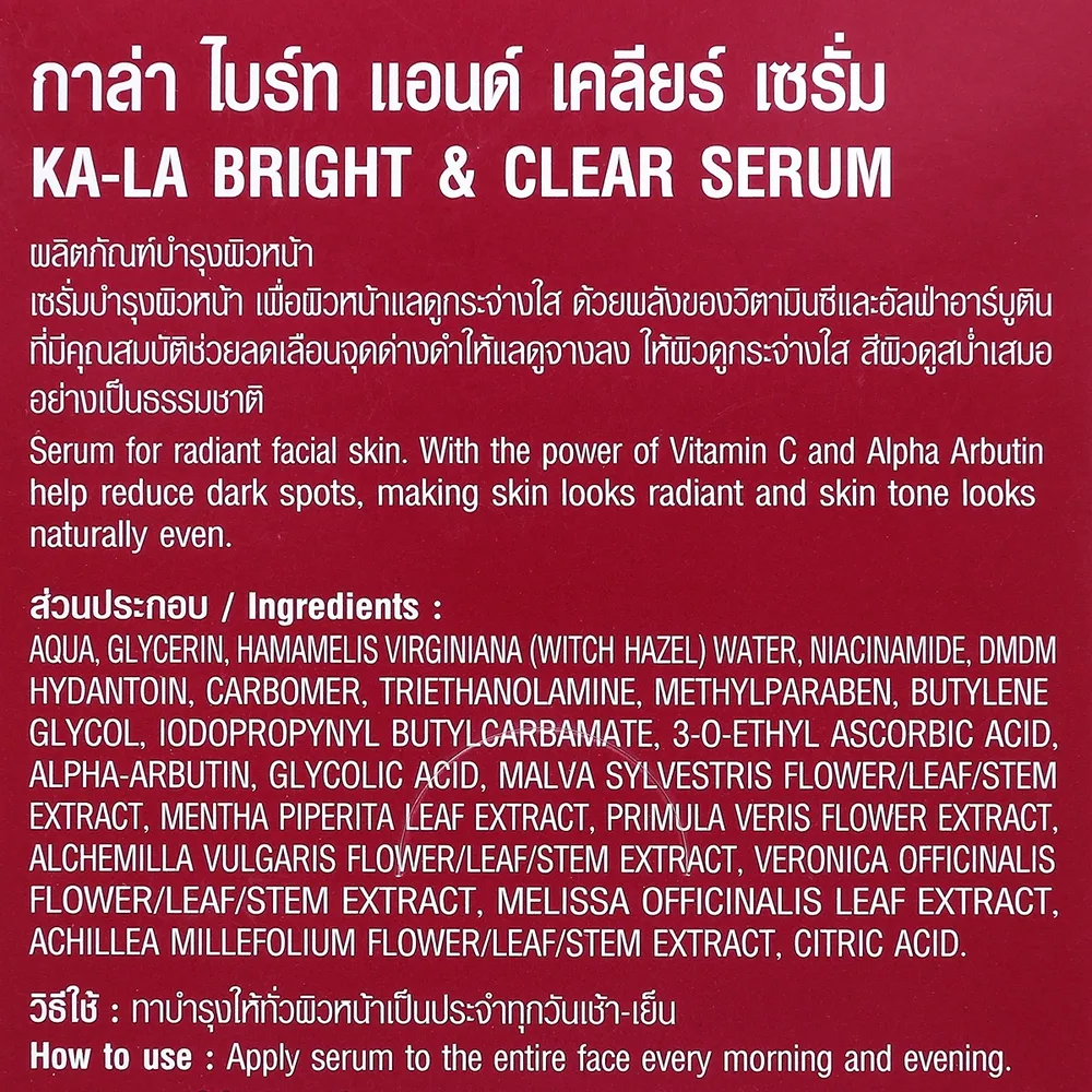 กาล่า ผลิตภัณฑ์บำรุงผิวหน้า เซรั่มบำรุงผิวหน้า เพื่อผิวหน้าแลดูกระจ่างใส ด้วยพลังของวิตามินซีและอัลฟ่าอาร์บูตินที่มีคุณสมบัติที่ช่วยลดเลือนจุดด่างดำให้แลดูจางลง<br />