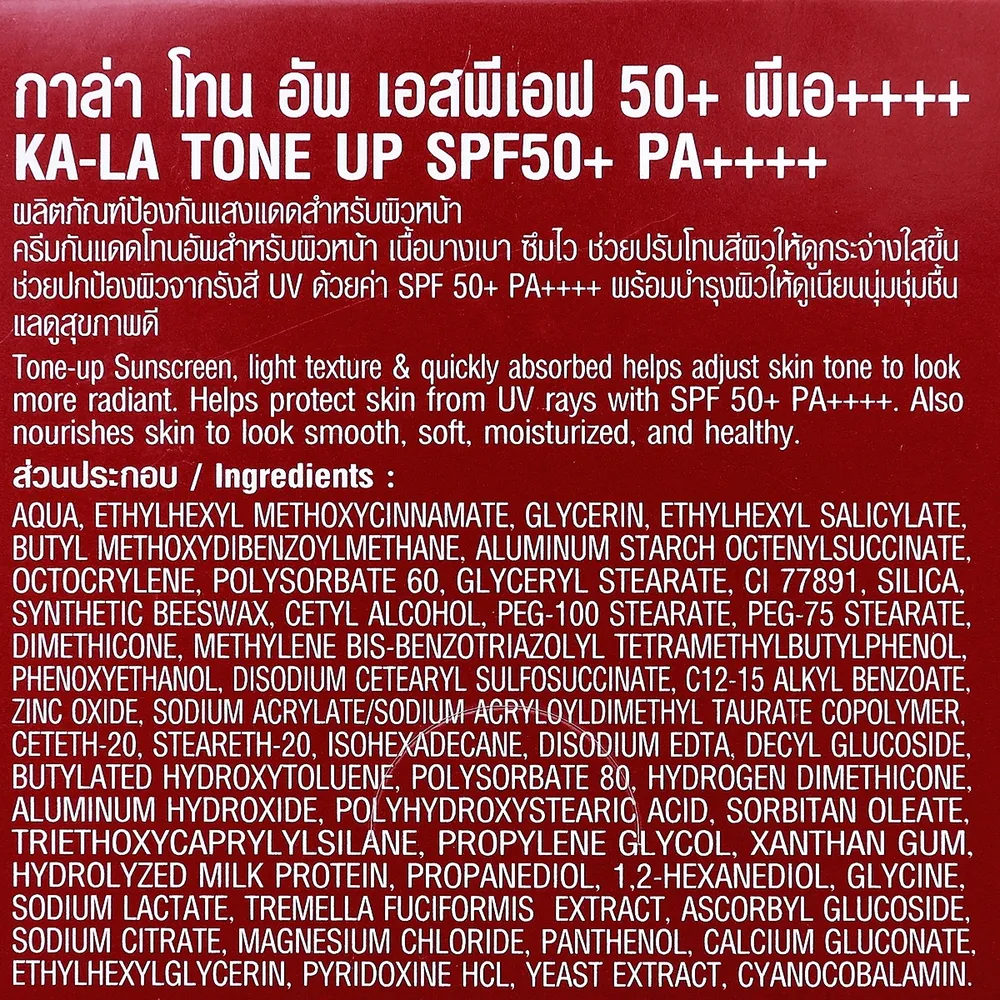 กาล่า ผลิตภัณฑ์ป้องกันแสงแดดสำหรับผิวหน้า ครีมกันแดดโทนอัพสำหรับผิวหน้า เนื้อบางเบา ซึมไว ช่วยปรับโทนสีผิวให้ดูกระจ่างใสขึ้น ช่วยปกป้องผิวจากรังสี UV ด้วยค่า SPF 50+ PA++++<br />