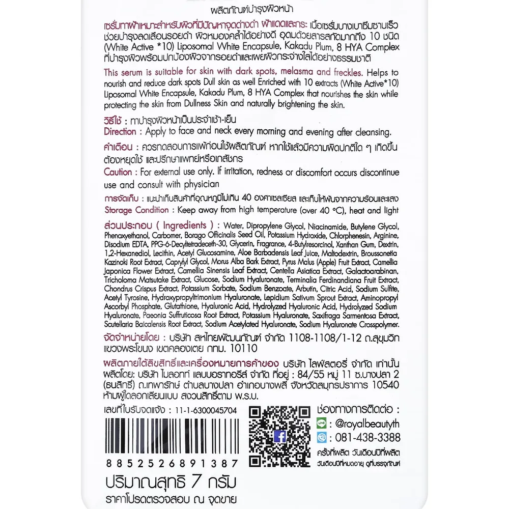 รอยัลบิวตี้ ไวท์ แอนตี้ เมลาสม่า เซรั่ม 7 ก.