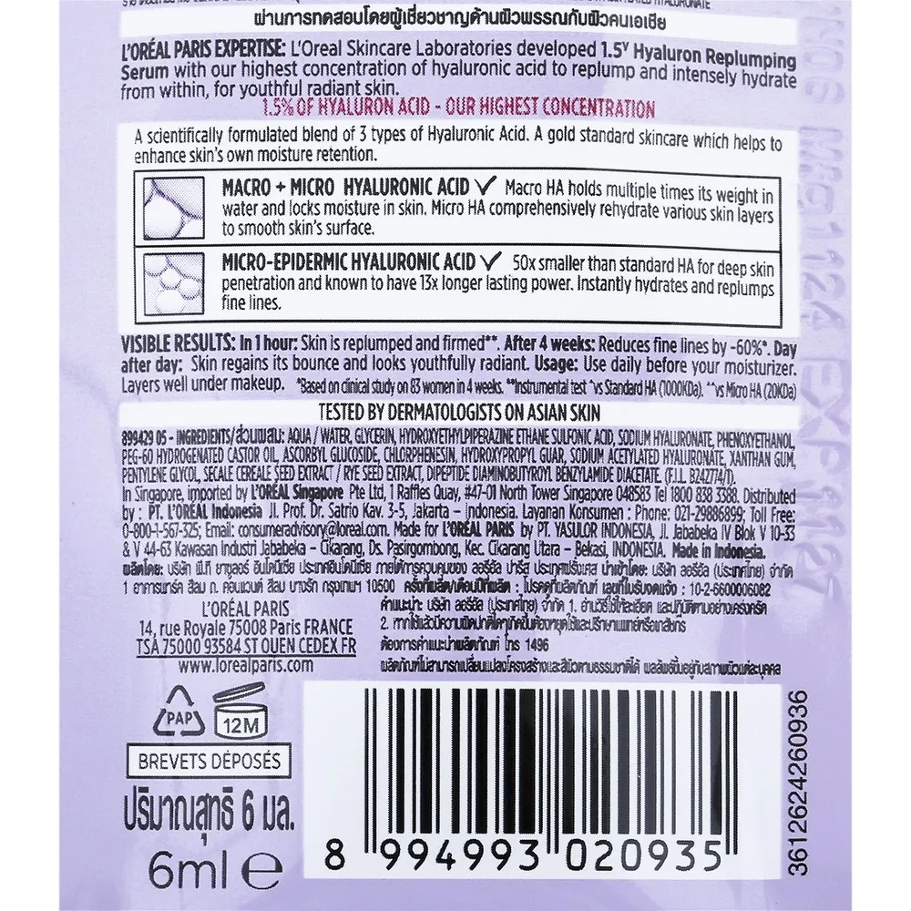 ลอรีอัล ปารีส รีไวทัลลิฟท์ ไฮยาลูรอนิค แอซิด รีพลัมปิง เซรั่ม 6 มล.