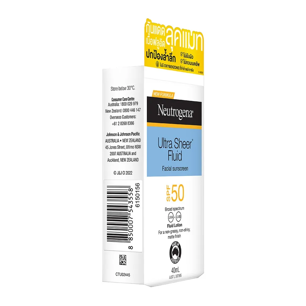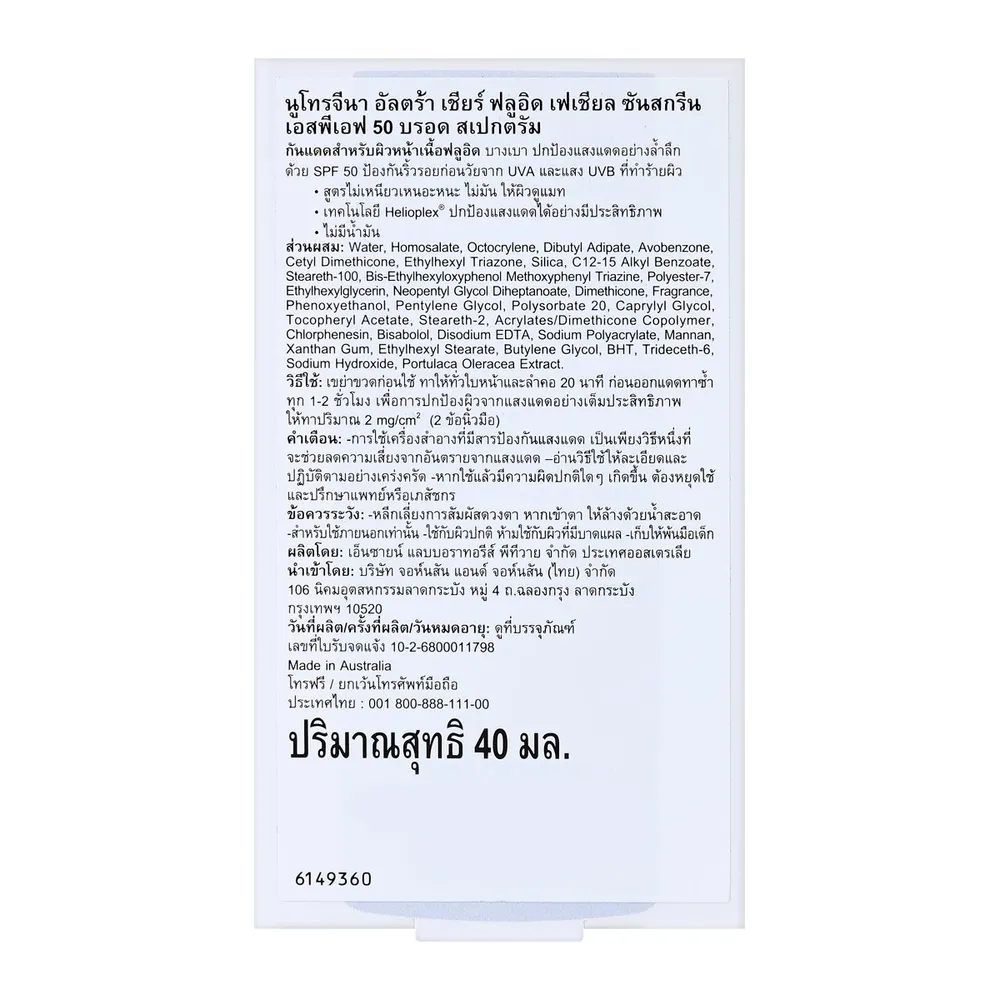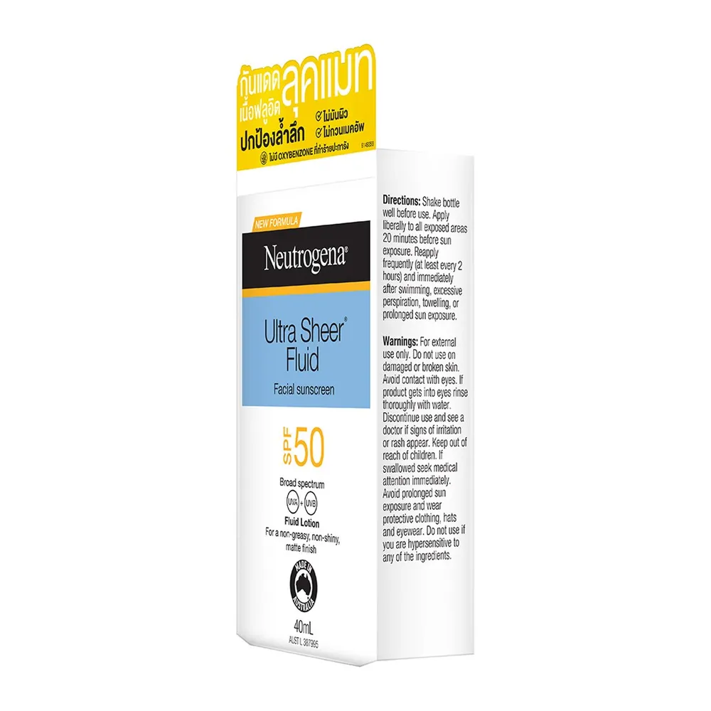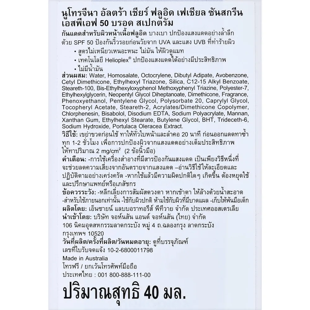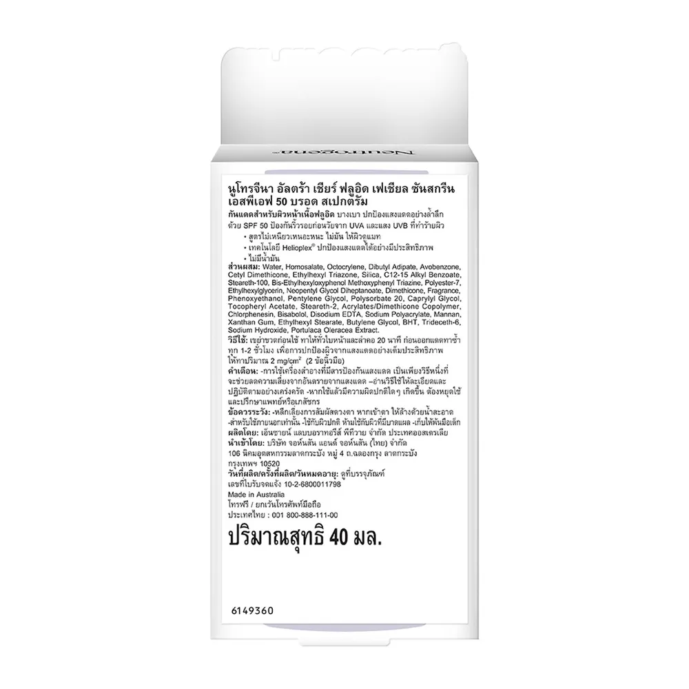 นูโทรจีนา อัลตร้า เชียร์ ฟลูอิด เฟเชียล ซันสกรีน เอสพีเอฟ 50 บรอด สเปกตรัม 40 มล.