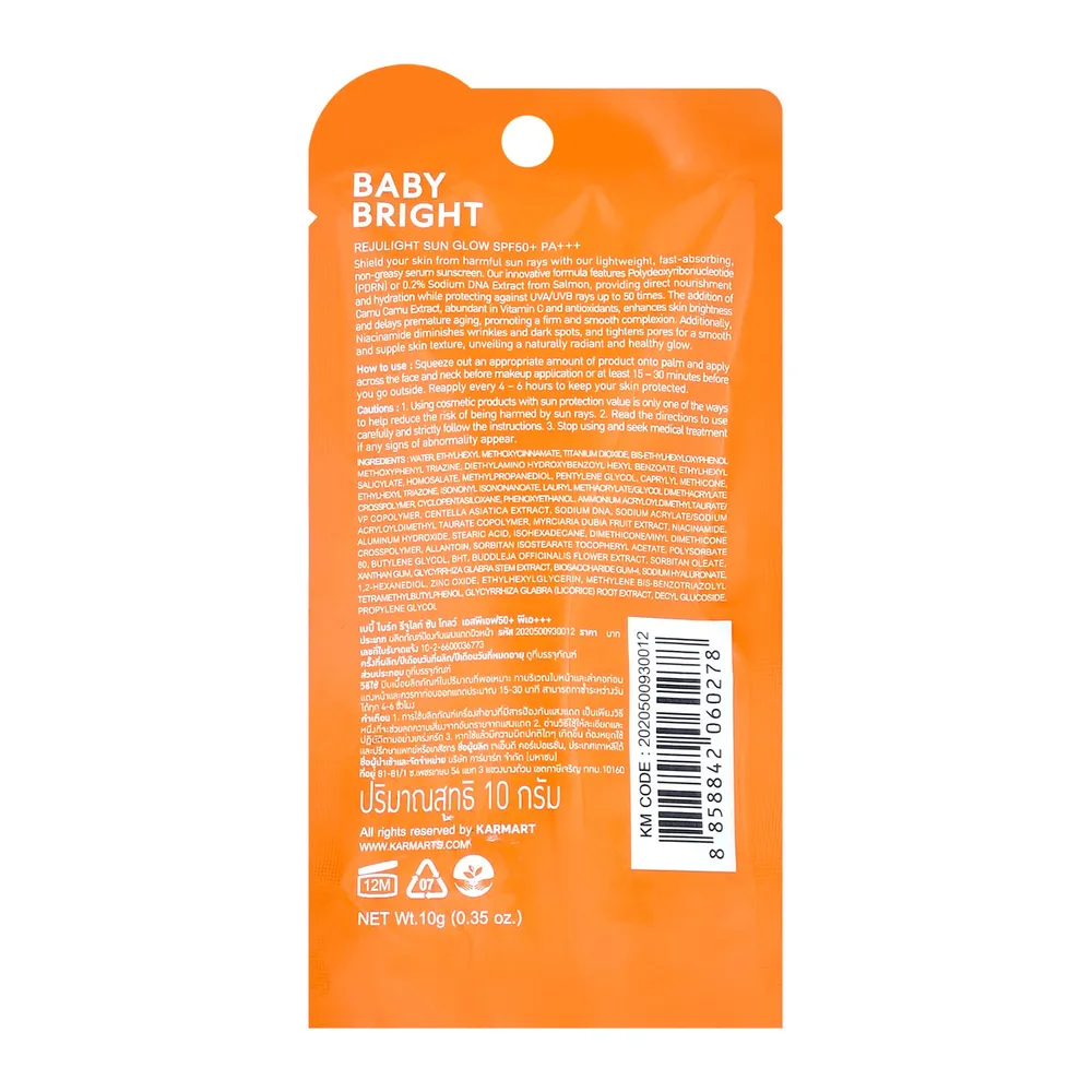 เบบี้ไบร์ท รีจูไลท์ ซัน โกลว์ SPF50+ PA+++ 10 ก.
