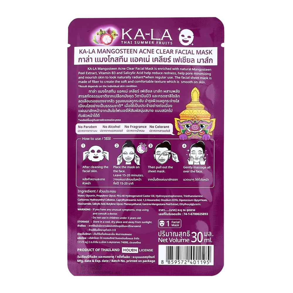 กาล่า แมงโกสทีน แอคเน่ เคลียร์ เฟเชียล มาส์ก 30 มล.