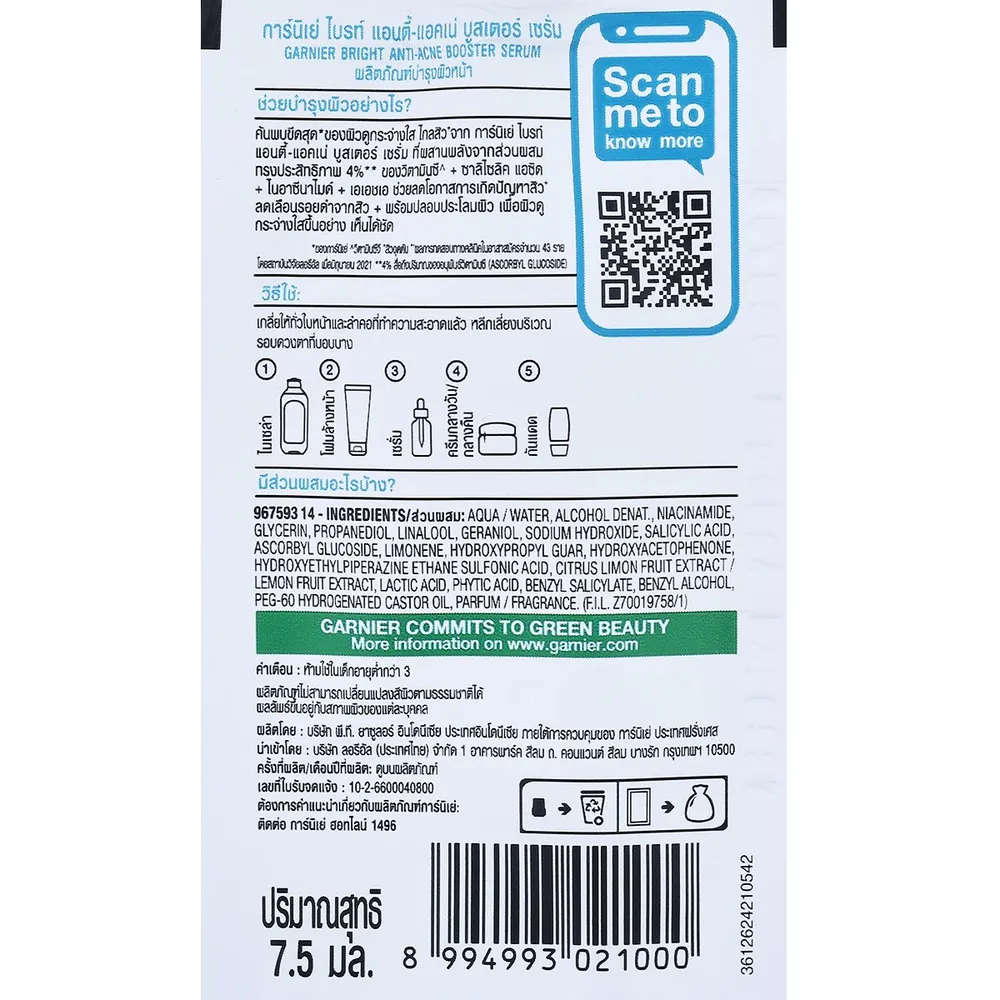 การ์นิเย่ ไบรท์ แอนตี้-แอคเน่ บูสเตอร์ เซรั่ม 7.5 มล.