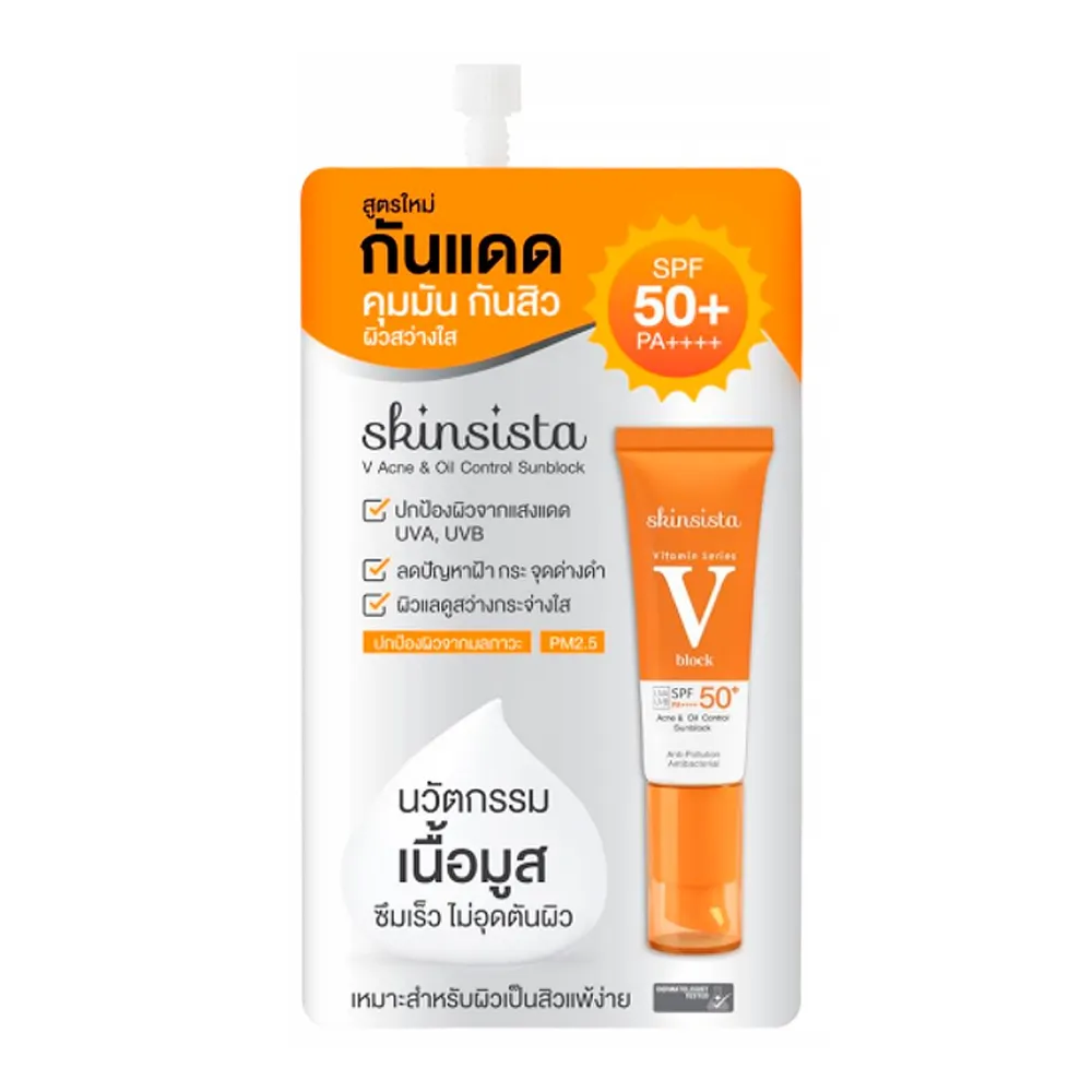 <p>สกินซิสต้า วี แอคเน่ &amp; ออยล์ คอนโทรล ซันบล็อก เอสพีเอฟ 50+ พีเอ++++ 5 ก.<br />