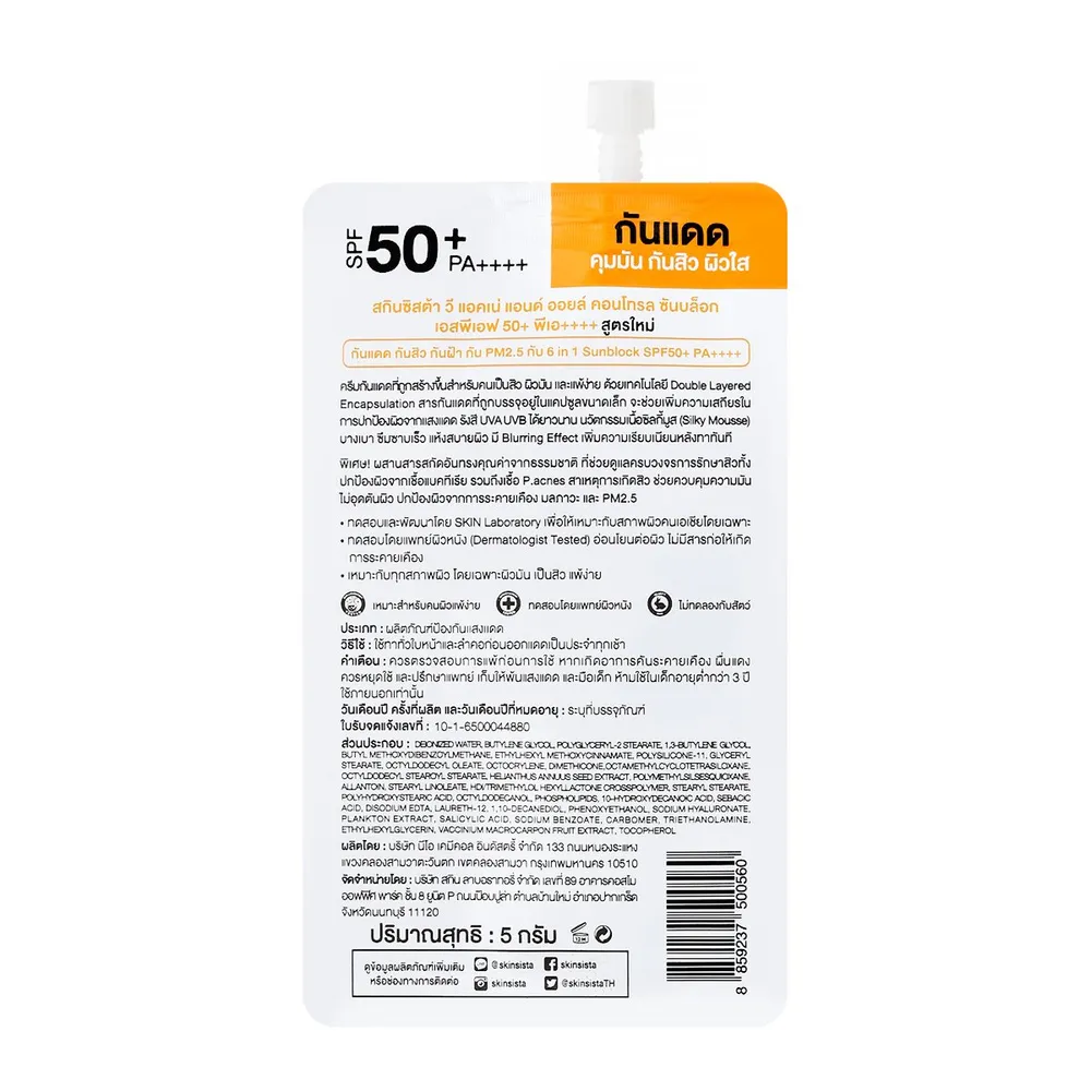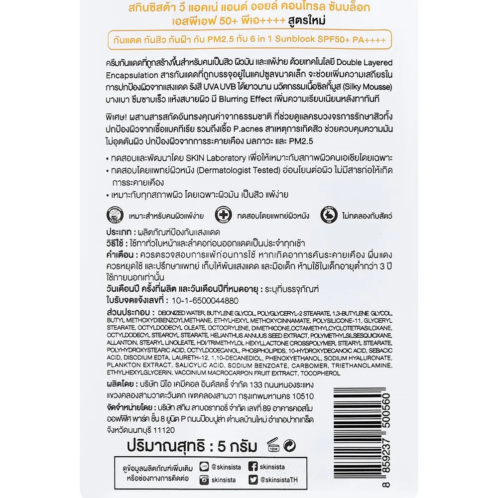 สกินซิสต้า วี แอคเน่ & ออยล์ คอนโทรล ซันบล็อก เอสพีเอฟ 50+ พีเอ++++ 5 ก.