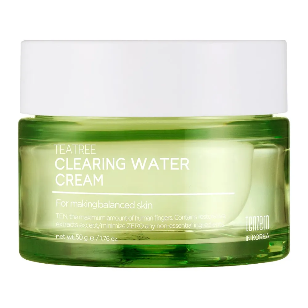 <p>เท็นซีโร่ ทีทรี เคลียร์ วอเตอร์ ครีม<br /><br />ครีมบำรุงผิวหน้า สูตร Teatree Clearing มีส่วนช่วยควบคุมความมัน ลดโอกาสเกิดสิว ช่วยกระชับรูขุมขน พร้อมลดรอยแดงบนใบหน้าอย่างเป็นธรรมชาติ<br /><br />- เท็นซีโร่ ครีมเคลียร์ทีทรี<br />- สารสกัดจากใบชา<br />- ซึมซาบง่าย เนื้อเบาบาง ช่วยให้ผิวชุ่มชื้นและมีชีวิตชีวา<br />- เติมความชุ่มชื้น<br />- มีส่วนช่วยปรับสมดุลความชุ่มชื้นในผิว<br /><br /><strong>*ผลลัพธ์ขึ้นอยู่กับสภาพผิวของแต่ละบุคคล</strong><br /><br /><strong>วิธีทาครีม :</strong> ทาให้ทั่วใบหน้า เช้า-เย็น ทาในปริมาณที่เหมาะสมให้ทั่วใบหน้า<br /><br />