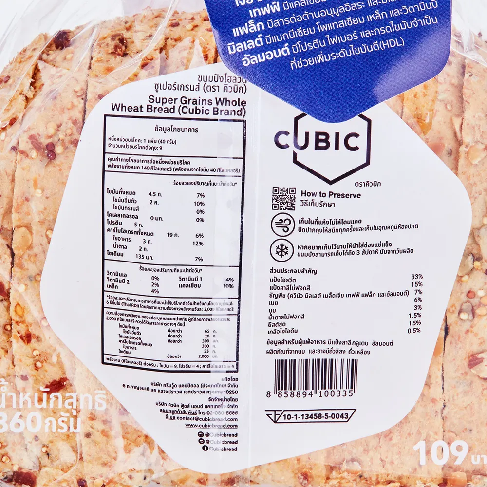 - คิวบิก ขนมปังโฮลวีทซูเปอร์เกรนส์<br />