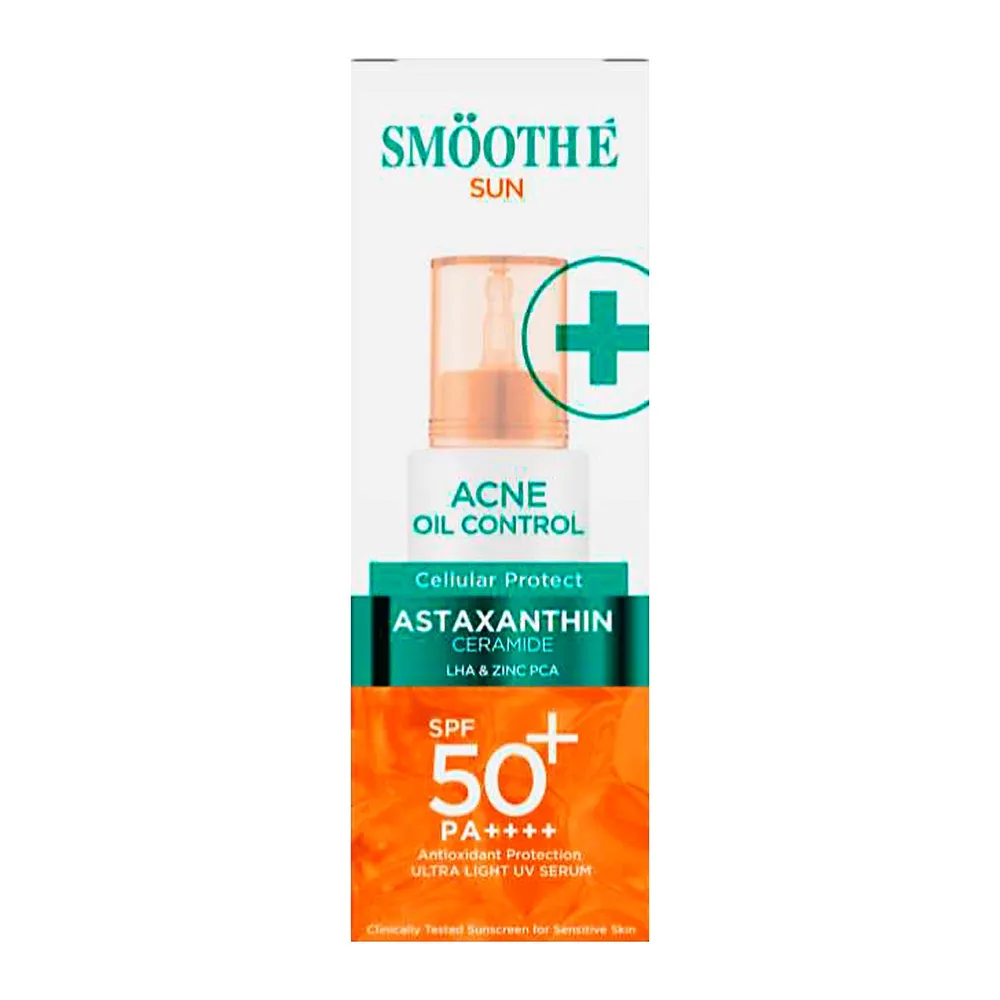 สมูทอี Sun Acne oil control: Astaxanthin &amp; ceramide Zinc &amp; LHA (สูตรสีเขียว : กันแดด + ลดสิว) ปกป้องผิวจาก แสงแดด มลภาวะ ฟื้นบำรุงสภาพผิวแข็งแรง และลดสิว ลดการอุดตัน ควบคุมความมัน<br />
