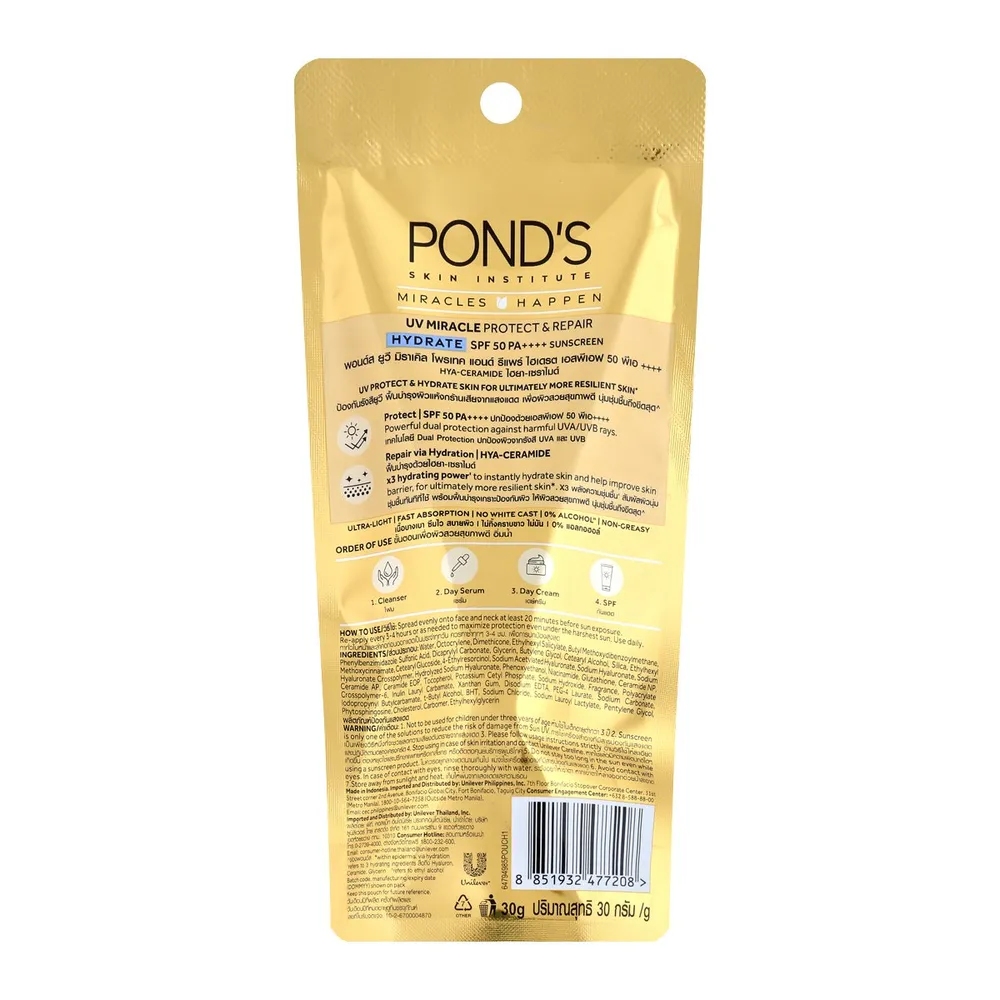 พอนด์ส ยูวี มิราเคิล โพรเทค แอนด์ รีแพร์ ไฮเดรต SPF50 PA++++ 30 ก.