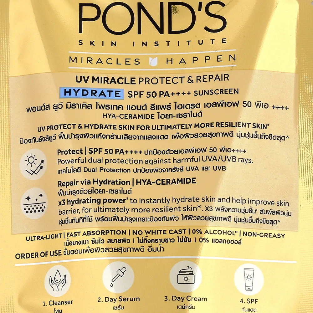 <p>พอนด์ส ยูวี มิราเคิล โพรเทค แอนด์ รีแพร์ ไฮเดรต SPF50 PA++++<br />