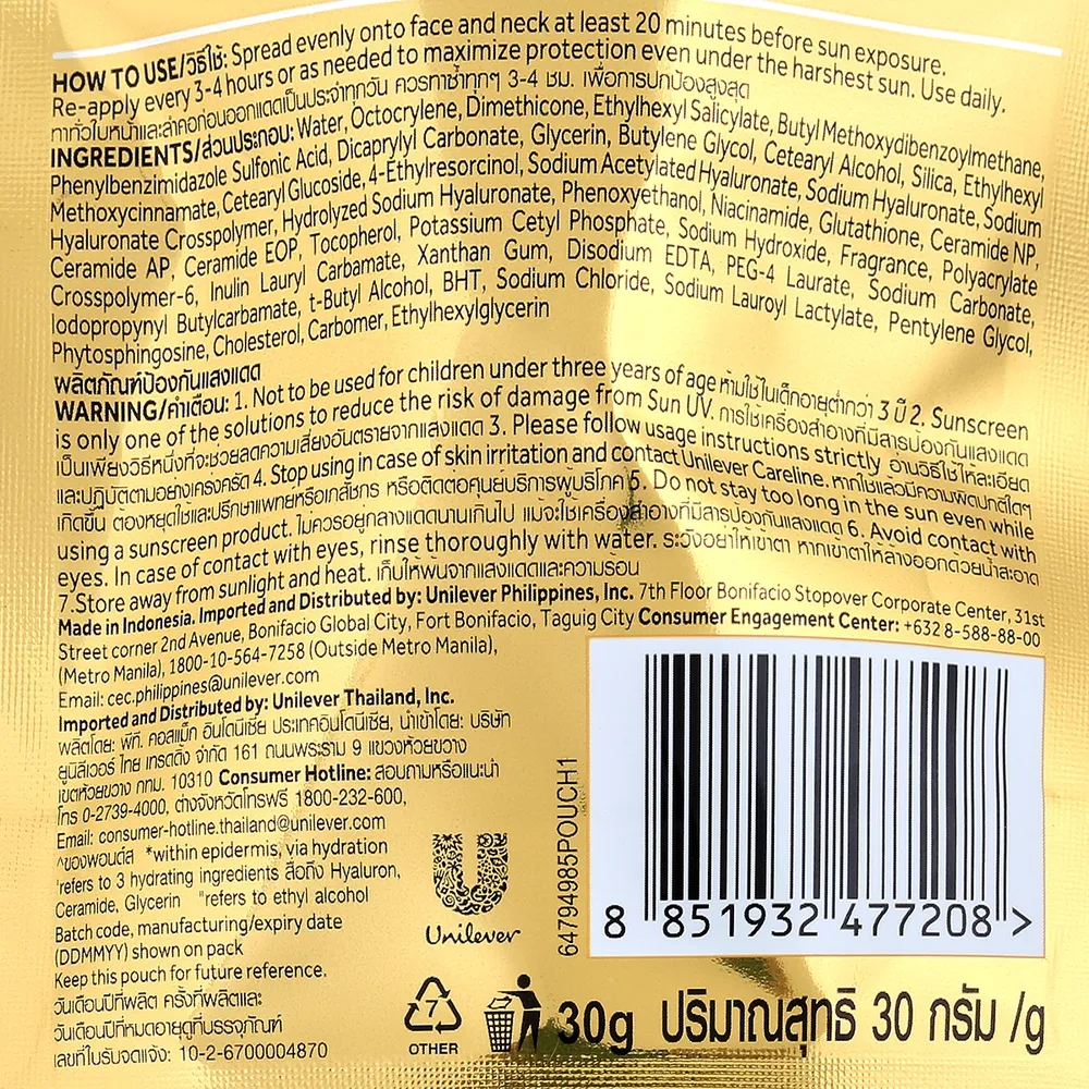 - ปกป้องผิวด้วย SPF50 PA++++ เทคโนโลยี 5 UV Filters&rsquo; ปกป้องผิวจากรังสี UVA1, UVA2, UVB, ลดผลกระทบจากแสงสีฟ้า และ มลภาวะฝุ่น ควัน<br />