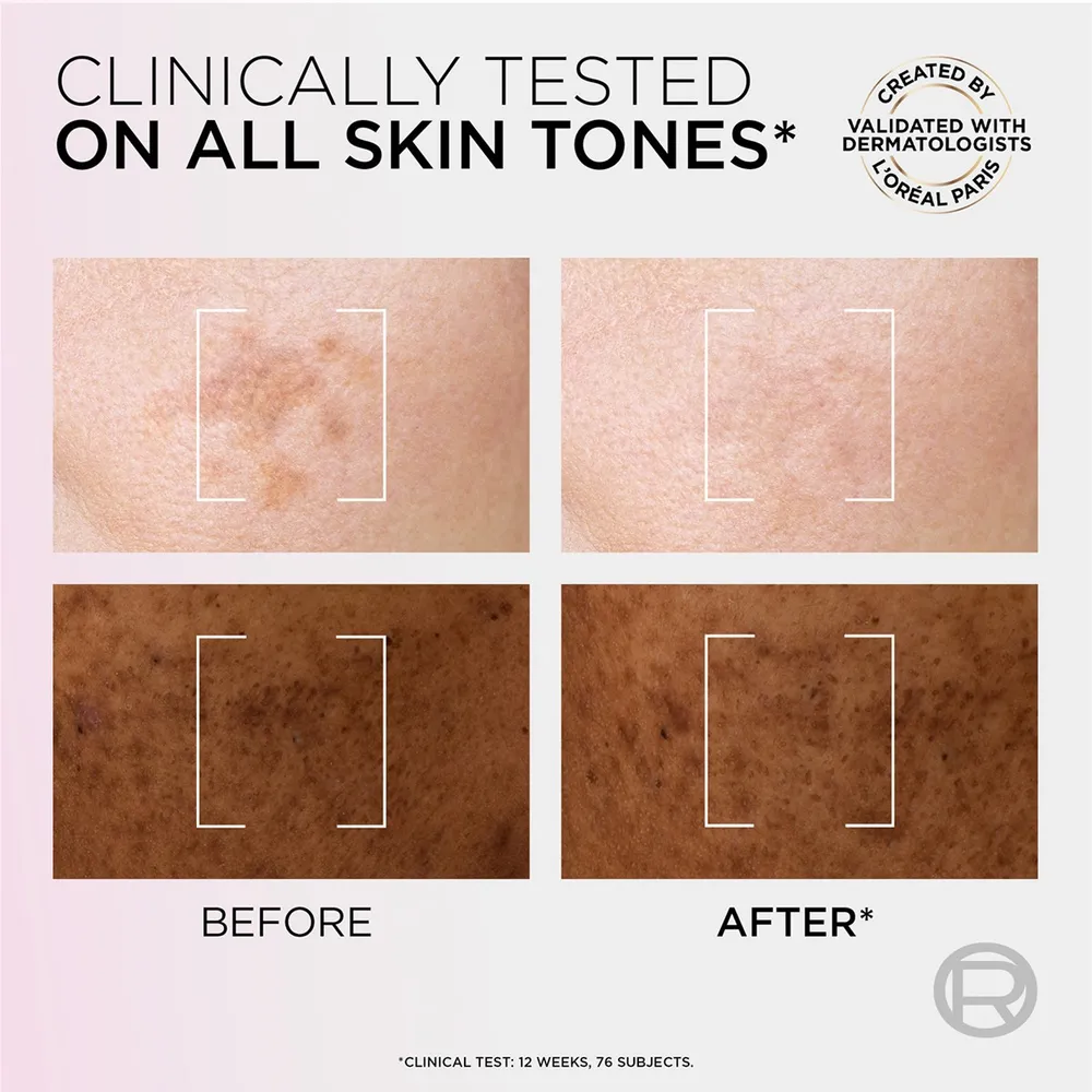 - ผิวชั้นนอก *ผลการทดสอบทางคลินิกในอาสาสมัครจำนวน 76 ราย โดยสถาบันวิจัย I.E.C. FRANCE INSTITUT D&#39;EXPERTISE CLINIQUE เมื่อ กรกฎาคม 2022 +สื่อถึง การเกิดจุดด่างดำจากแสงแดดที่ผิวชั้นนอก<br />