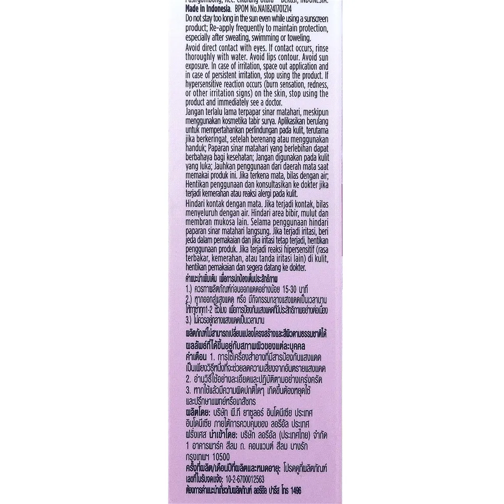 - วิธีใช้: เขย่าขวดก่อนใช้ ทาบริเวณหน้าและลำคอหลังลงมอยส์เจอไรเซอร์<br />