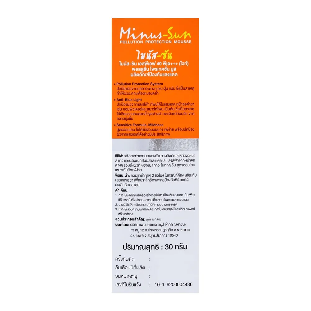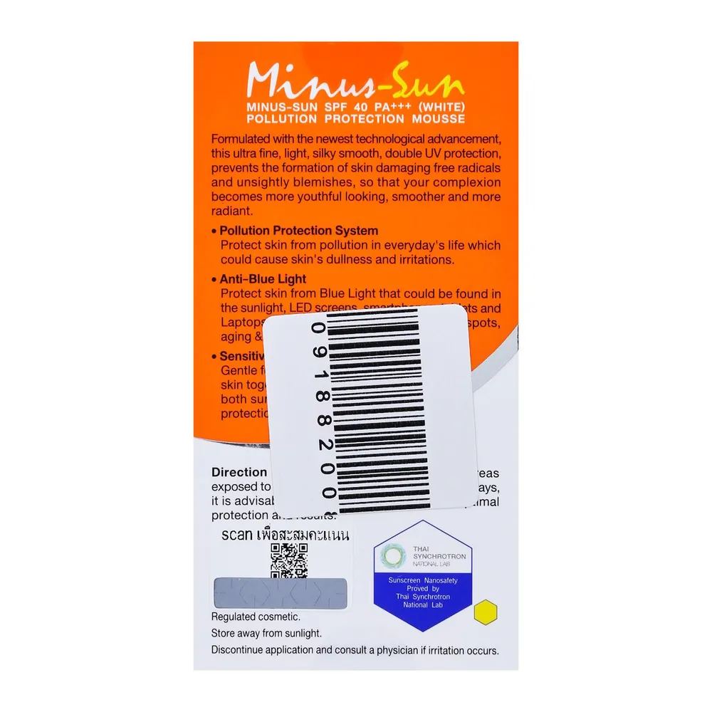 ไมนัส-ซัน เฟเชียล ซัน โพรเทคชั่น ซิลกี้ มูส พลัส SPF40 PA+++ สีขาว 30 ก.