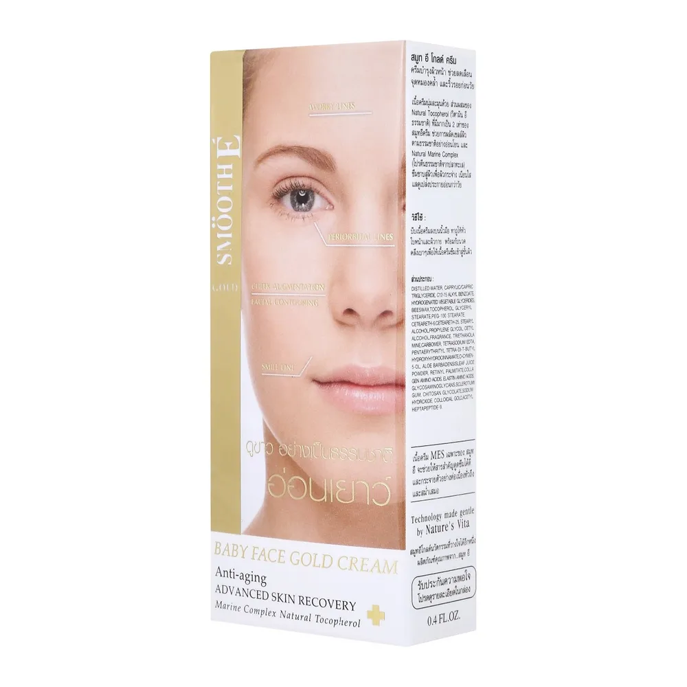 <p>สมูทอี เบบี้เฟส โกลด์ ครีม แอนตี้ เอจจิ้ง แอดวานซ์ สกิน รีคัฟเวอรี่ 12 ก.<br />