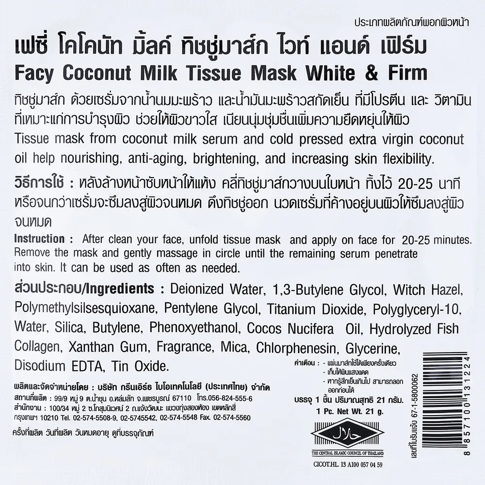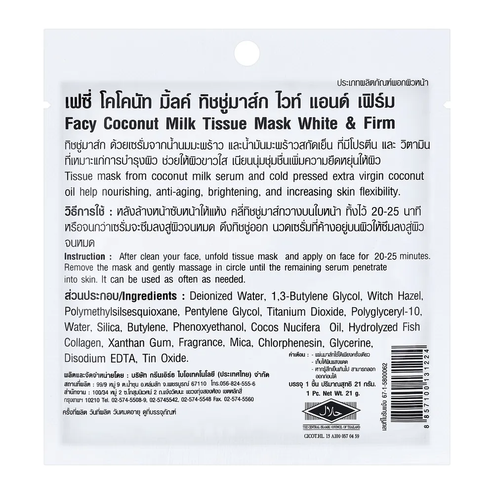 เฟซี่ ทิชชู่มาส์ก โคโคนัท มิลค์ 21 ก.