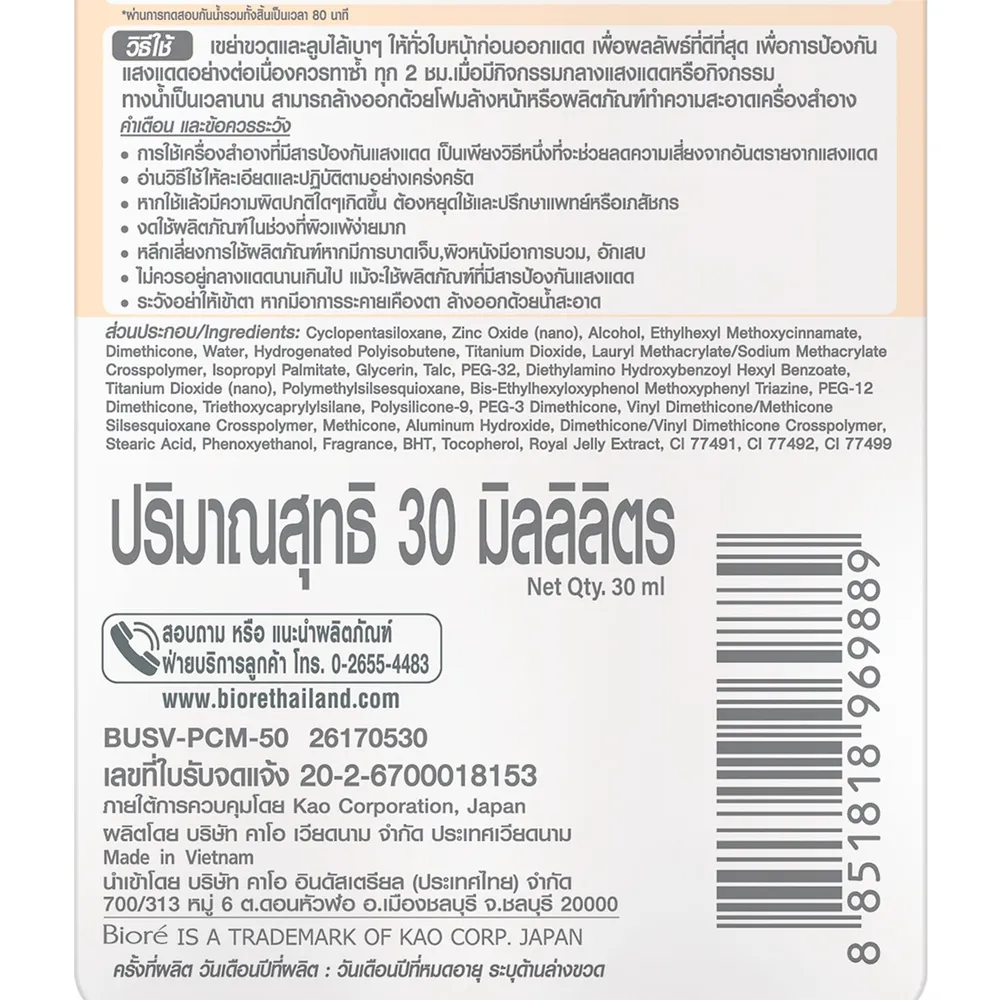 - ปกป้องผิวจากรังสีUVA/UVB ได้สูงสุด<br />