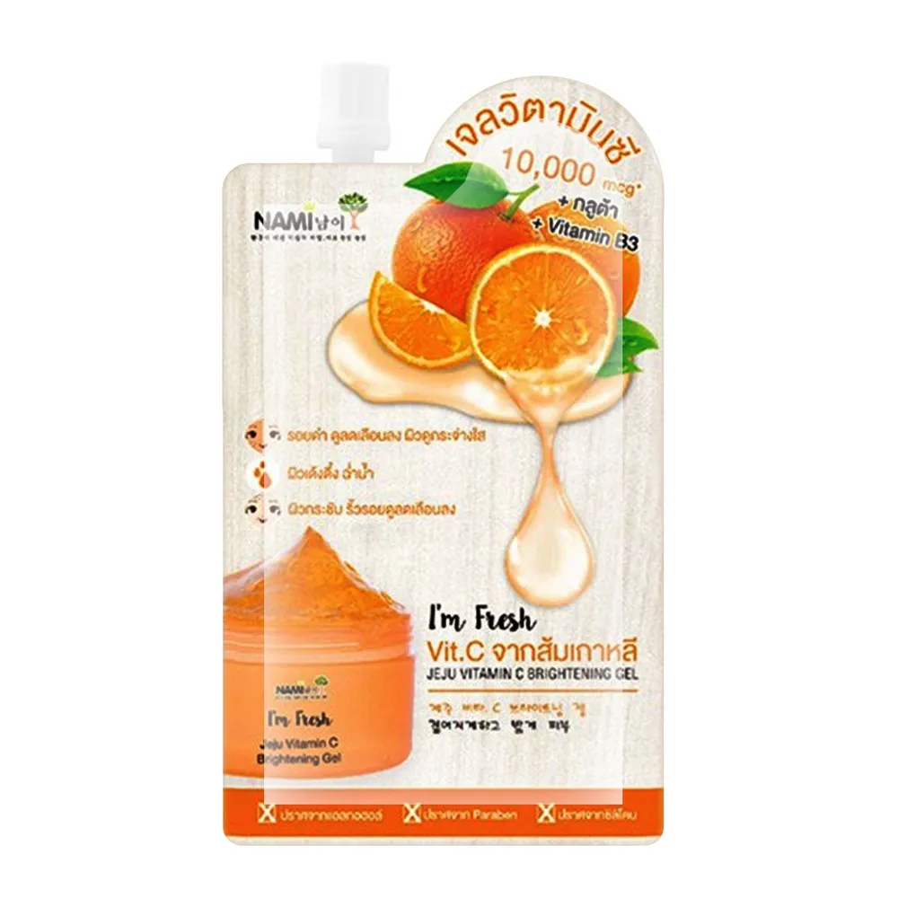 นามิ แอม เฟรช เชจู วิตามินซี ไบรท์เทนนิ่ง เจล เจลวิตามินซีเข้มข้นผสานสารสกัดส้มจากเกาะเชจูประเทศเกาหลี เกาะที่เต็มไปด้วยดินภูเขาไฟ ทำให้ส้มอุดมไปด้วยวิตามินซีและแร่ธาตุต่างๆ ที่เป็นประโยชน์ต่อผิว ช่วยฟื้นบำรุงผิวอย่างเร่งด่วน ให้จุดด่างดำและรอยสิวดูจางลง ผิวนุ่ม ฉ่ำน้ำ<br />