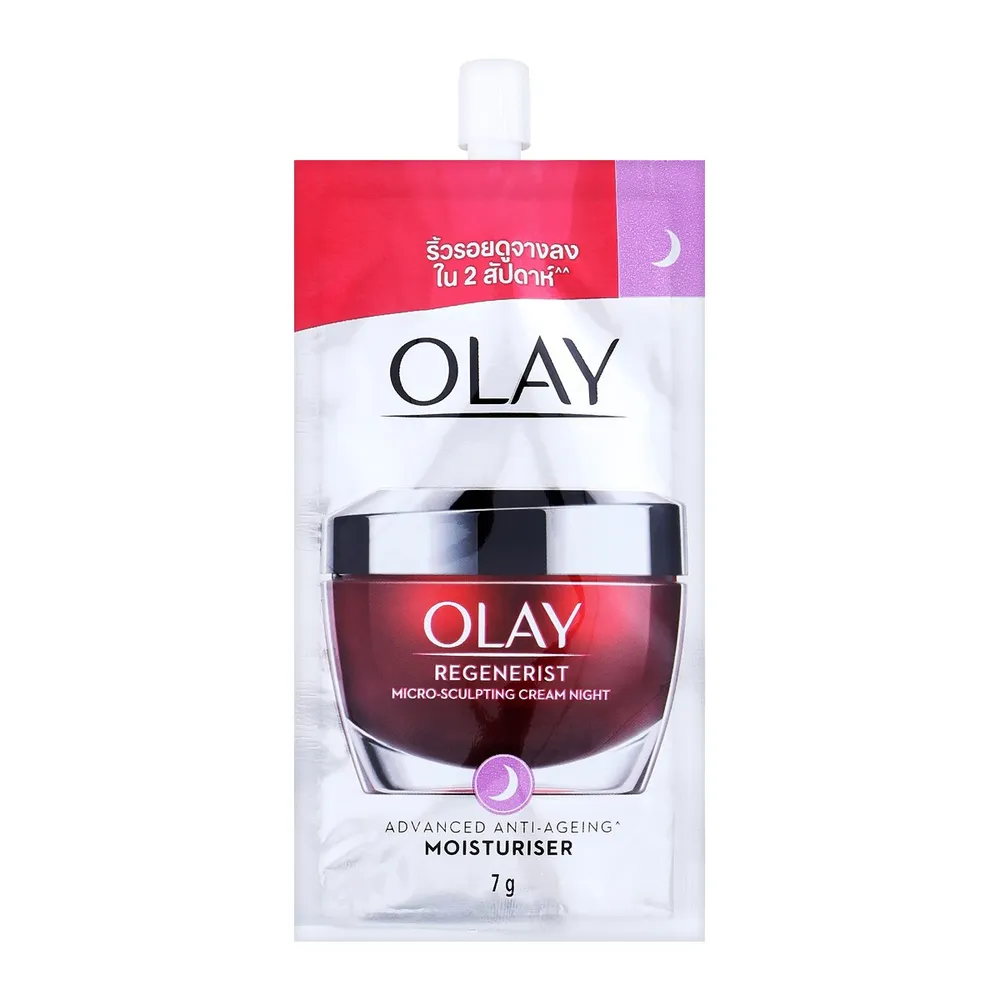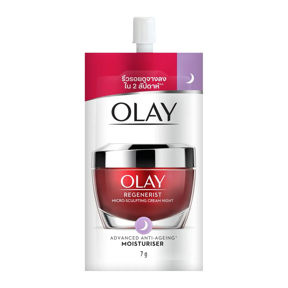 โอเลย์ รีเจนเนอรีส ไมโคร-สกัลป์ติ้ง ไนท์ครีมที่ช่วยเติมเต็มและสร้างเซลล์ผิวใหม่ เติมความชุ่มชื้นอย่างต่อเนื่องตลอดคืน เพื่อช่วยให้ร่องลึกและริ้วรอยดูลดเลือนลง ผิวของคุณจะดูอ่อนเยาว์ลง รู้สึกนุ่มและเนียนขึ้น หลังจาก 2 สัปดาห์<br />