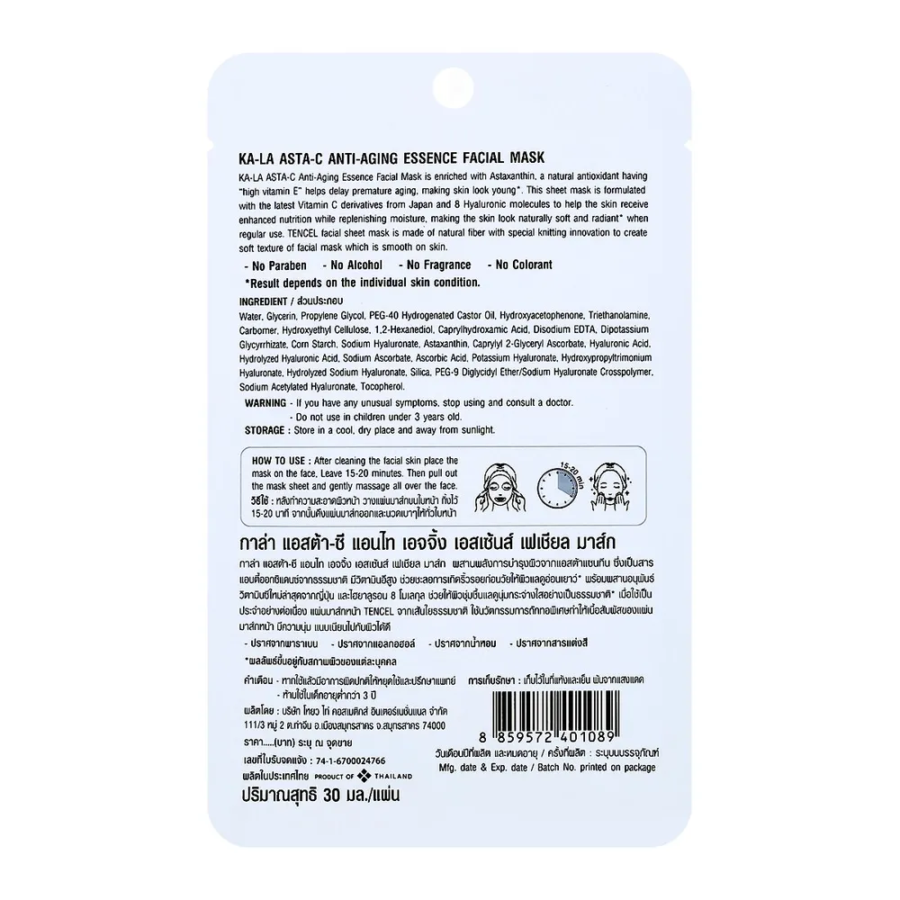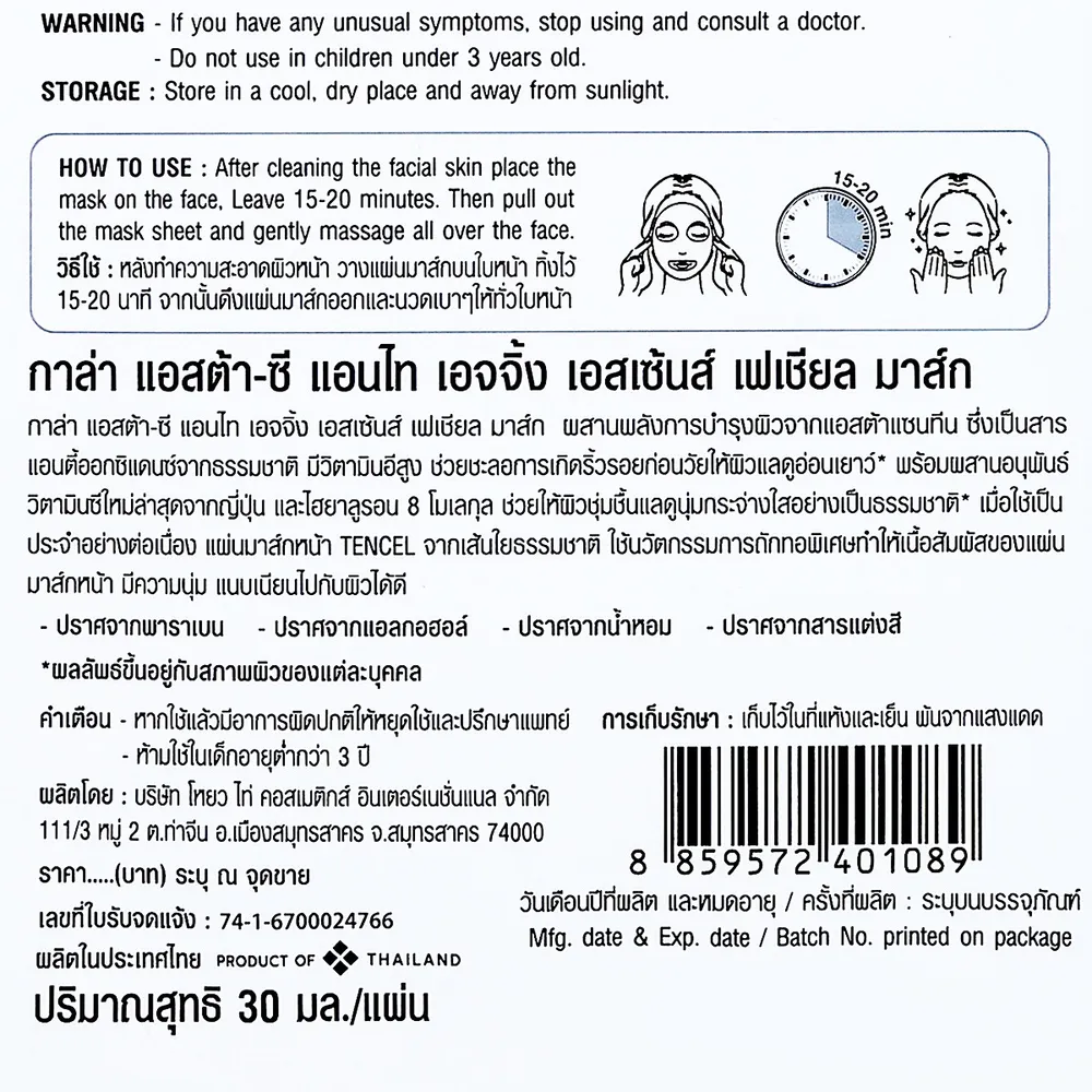 กาล่า แอสต้า-ซี แอนไท เอจจิ้ง เอสเซนส์ เฟเชียล มาส์ก 30 มล.