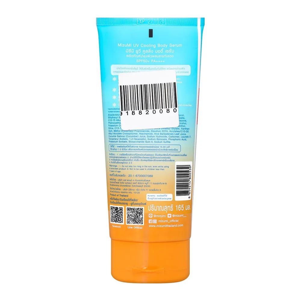 มิซึมิ&nbsp;ยูวี คูลลิ่ง บอดี้ เซรั่ม SPF50+ PA+++ ปกป้องผิวจากรังสียูวี ให้สัมผัสเย็นสดชื่นทันทีที่ทา พร้อมสารบำรุงผิวจากธรรมชาติ ซึมซาบเร็ว และไม่เหนียวเหนอะหนะ ช่วยปกป้องผิวจากรังสี UVA/UVB ด้วยคุณประโยชน์ของสารสกัดจากว่านหางจระเข้และแตงกวา<br />