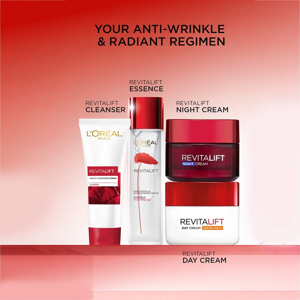 ผลิตภัณฑ์บำรุงผิวหน้าสำหรับกลางคืน ฟื้นบำรุงได้อย่างเต็มประสิทธิภาพ ลอรีอัล ปารีส รีไวทัลลิฟท์ แอนตี้ริงเคิล+เฟิร์มมิ่ง ไนท์ครีมเพื่อผิวกระจ่างใส บำรุงได้ภายในคืนเดียว<br />