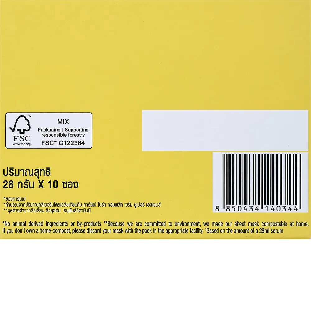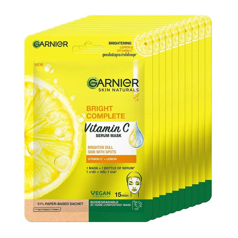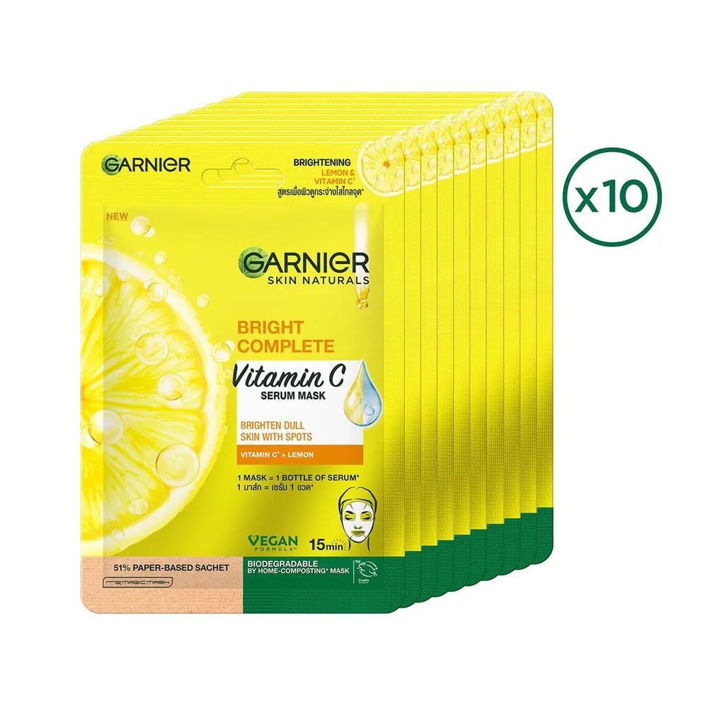 การ์นิเย่ สกิน แนทเชอรัลส์ ไบรท์ คอมพลีท วิตามิน ซี เซรั่ม มาส์ก x 10 ชิ้น