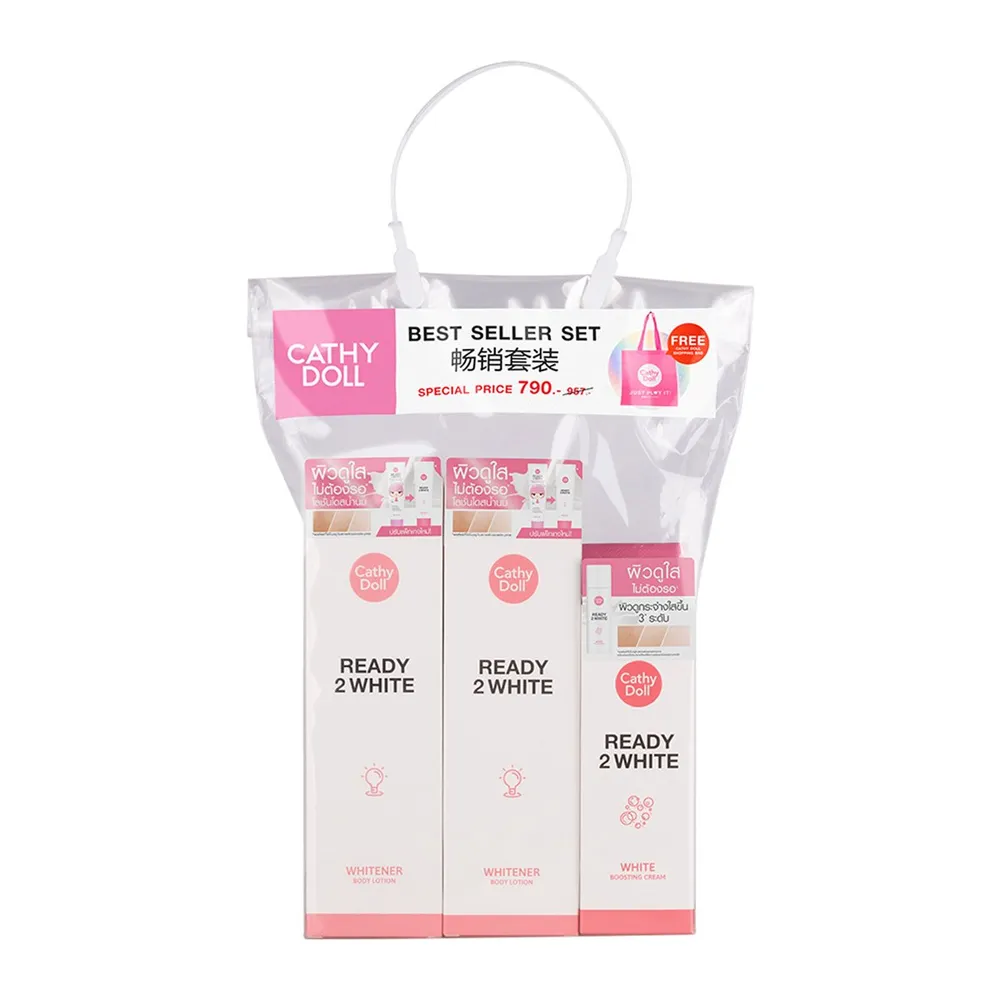 - ใน 1 ชุดจะประกอบไปด้วย เคที่ ดอลล์ เรดี้ทูไวท์ ไวท์เทนเนอร์ บอดี้ โลชั่น และเคที่ ดอลล์ เรดี้ทูไวท์ ไวท์ บูสติ้ง ครีม<br />