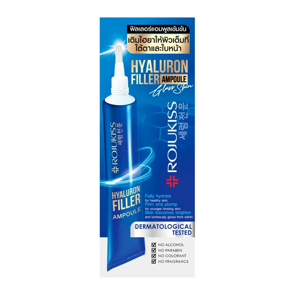 โรจูคิส ไฮยา ฟิลเลอร์ แอมพูล ไฮยารูลอน แอมพูลเข้มข้น ทาได้ทั้งหน้าและรอบดวงตา เติมไฮยารูลอนให้ผิวรู้สึกตึงกระชับทันทีที่ใช้ เติมเต็มไฮยารูลอนให้ผิวมากถึง 8 โมเลกุล ด้วยนวัตกรรม HYA-FOCUS Technology ให้ผิวดูอวบอิ่ม ดูเรียบเนียน พร้อม 5X Action กู้ผิวรอบดวงตา และใบหน้าที่ไม่สดใส แลดูไม่กระชับ และริ้วรอยเริ่มต้นได้ครบทุกด้าน<br />